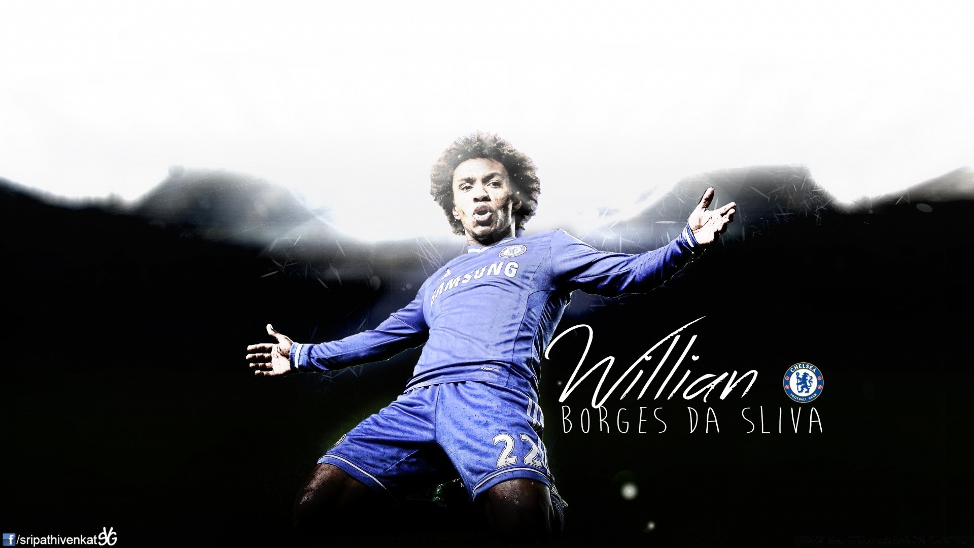 Calciatore in uniforme blu su sfondo bianco e nero