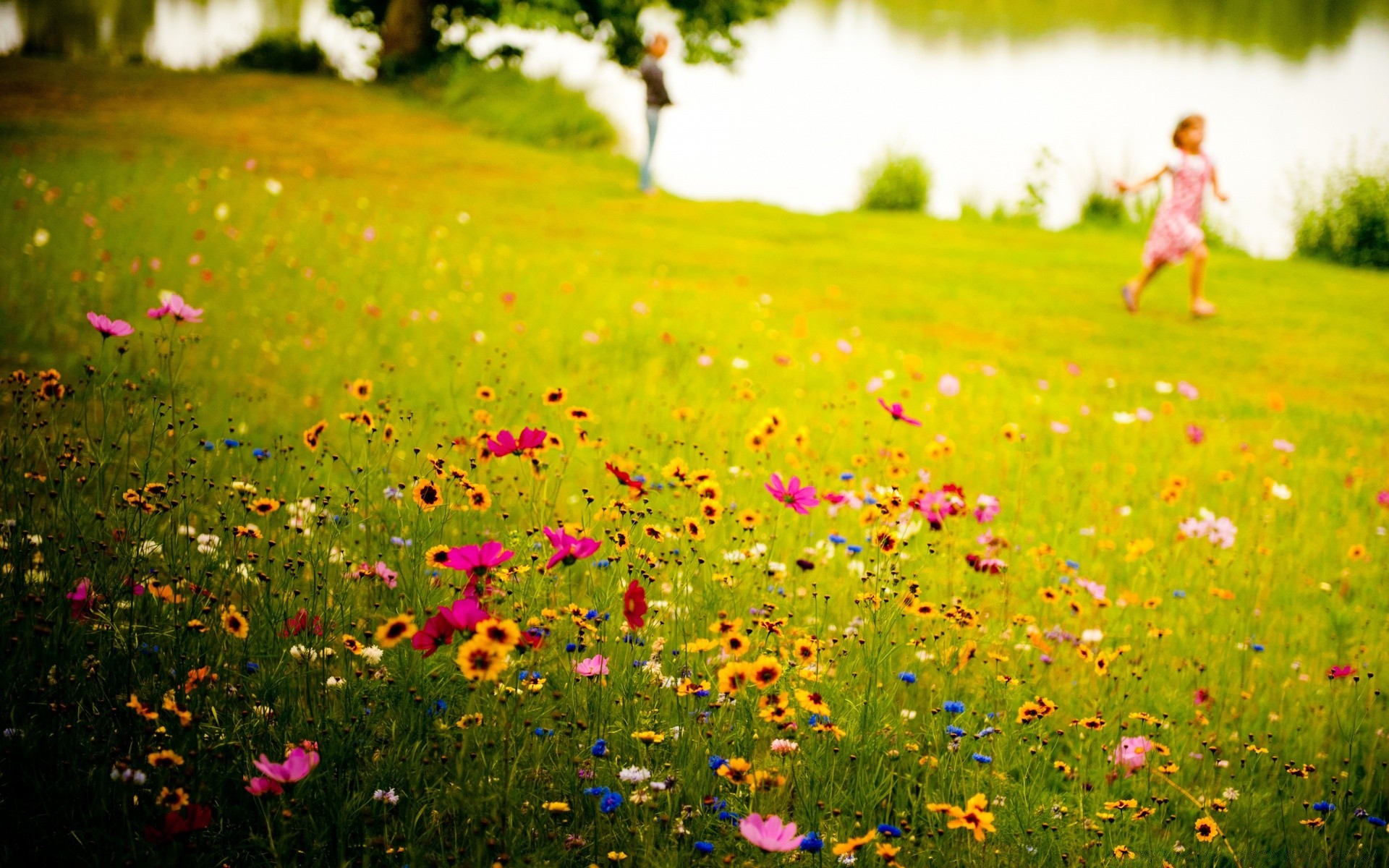 I contrasti della natura sono l'erba verde e il cielo scuro