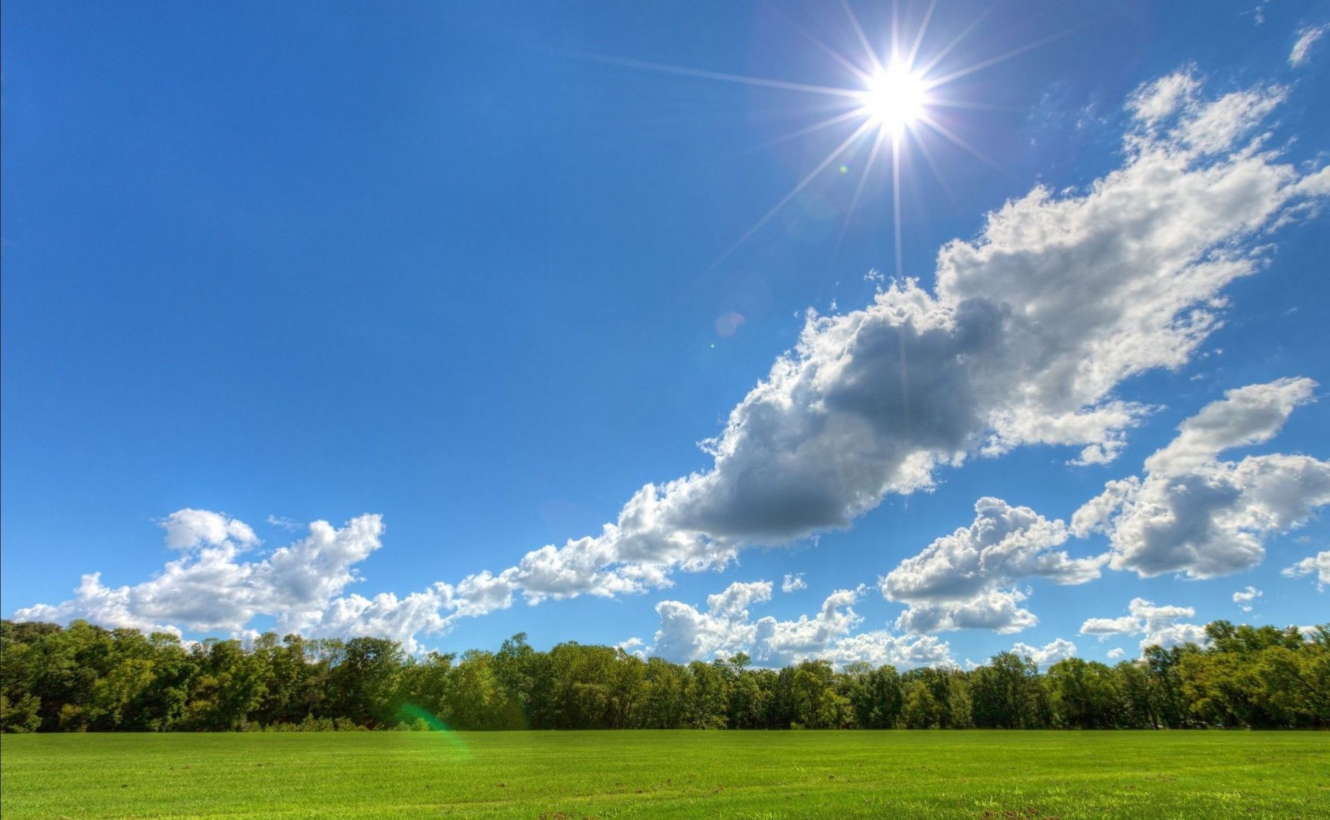 Campo alberi paesaggio sole nuvole