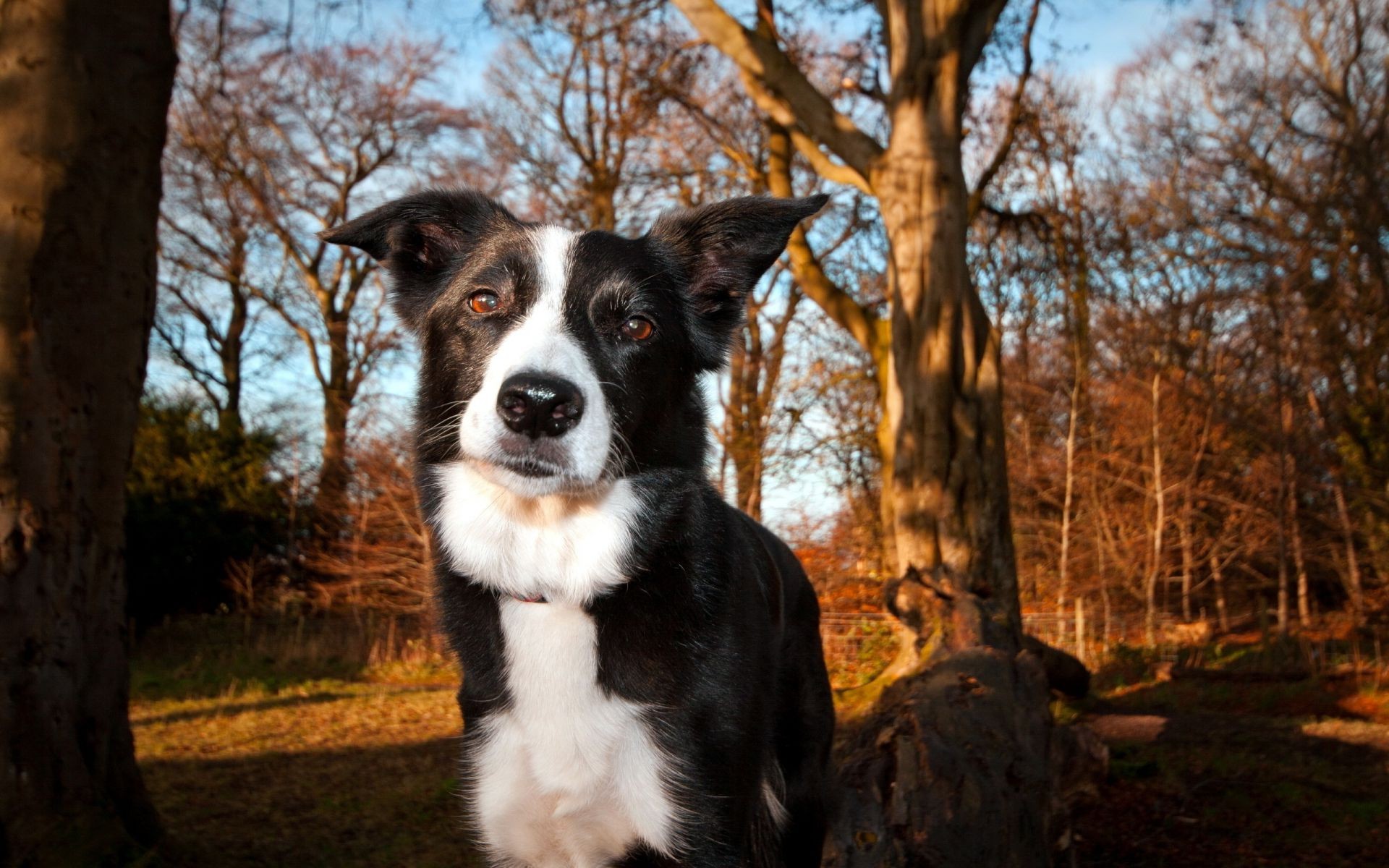 Simpatico cucciolo di colore scuro con macchie chiare sul muso