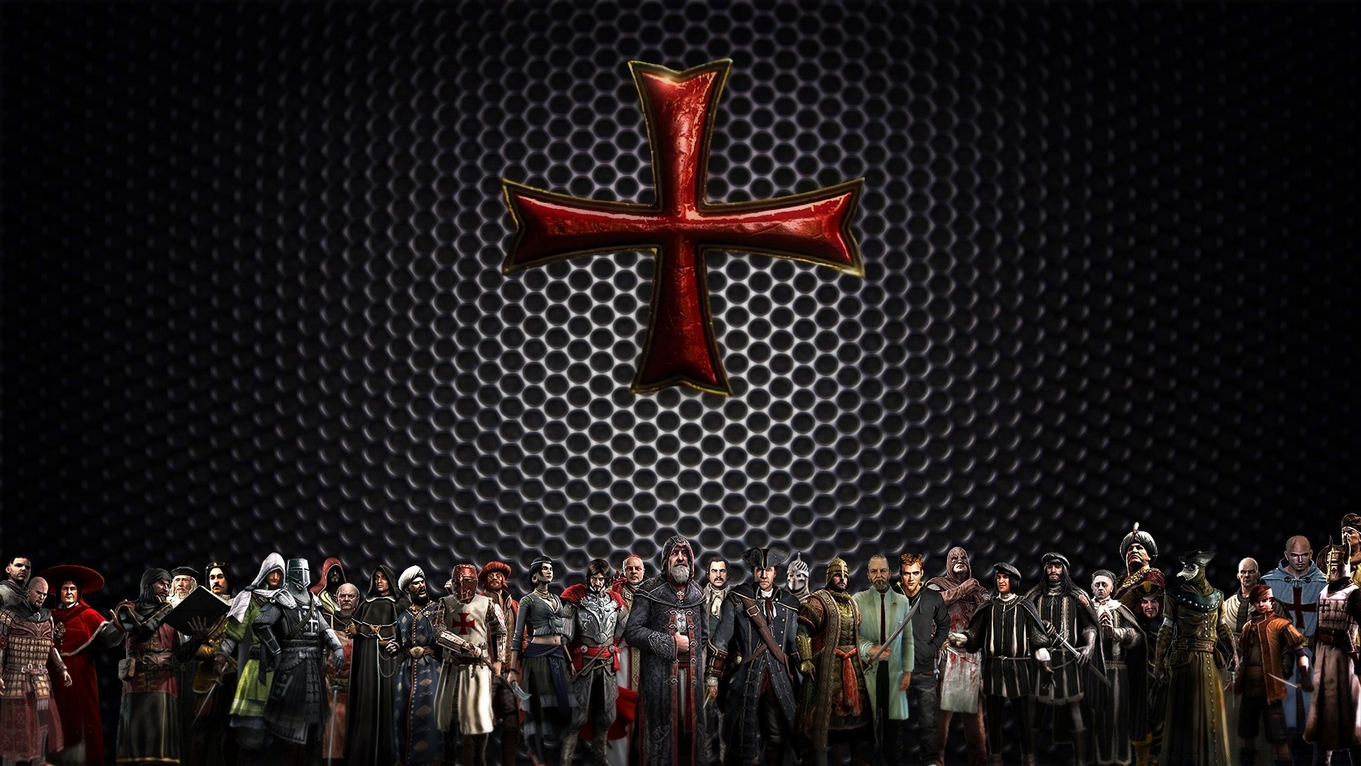 I personaggi del gioco Assassins sullo sfondo della Croce