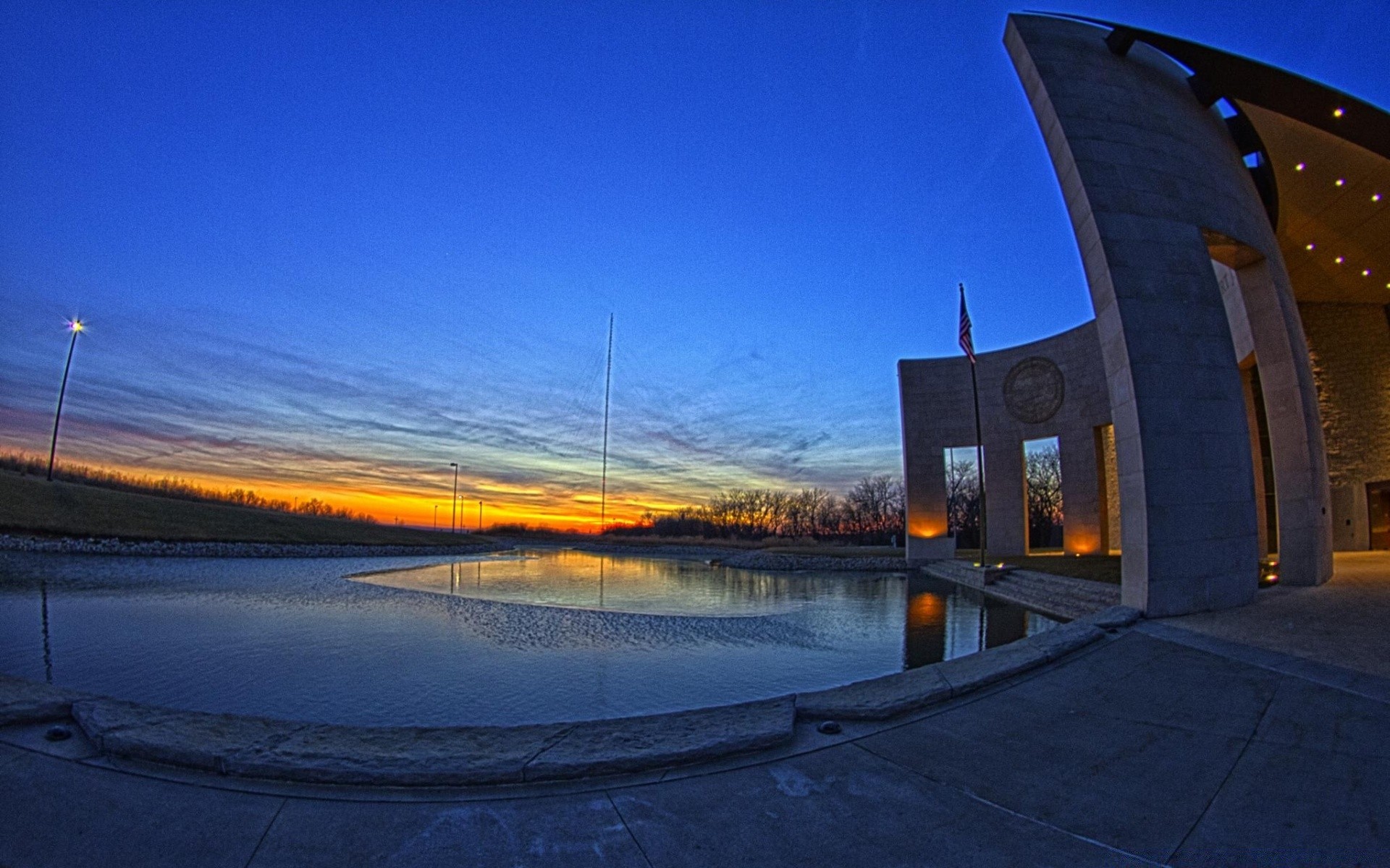 Fontana con illuminazione. Città della sera