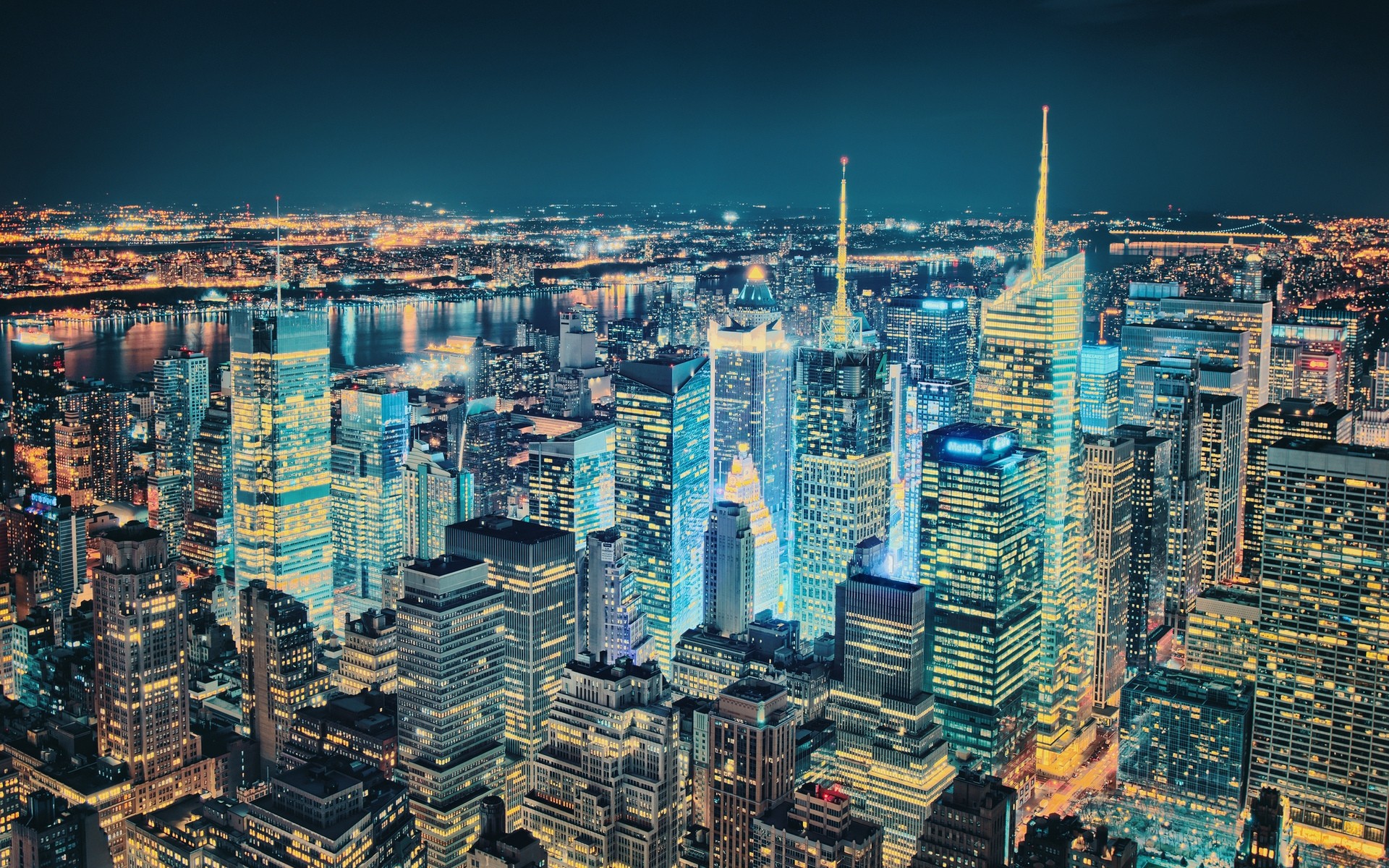 Città notturna alla luce delle lanterne degli Stati Uniti