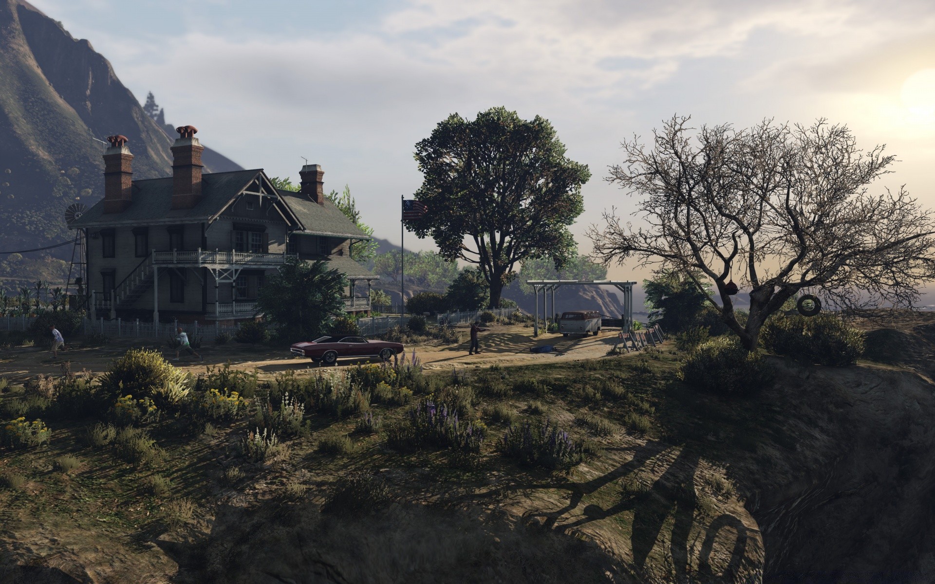 Casa con illuminazione dietro una recinzione di ferroCasa con illuminazione dietro una recinzione di ferro