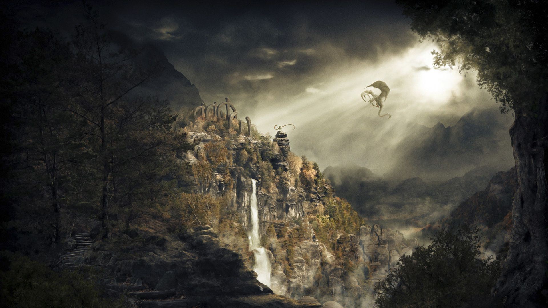 Vista del castello del cavaliere e della cascata dal pallone
