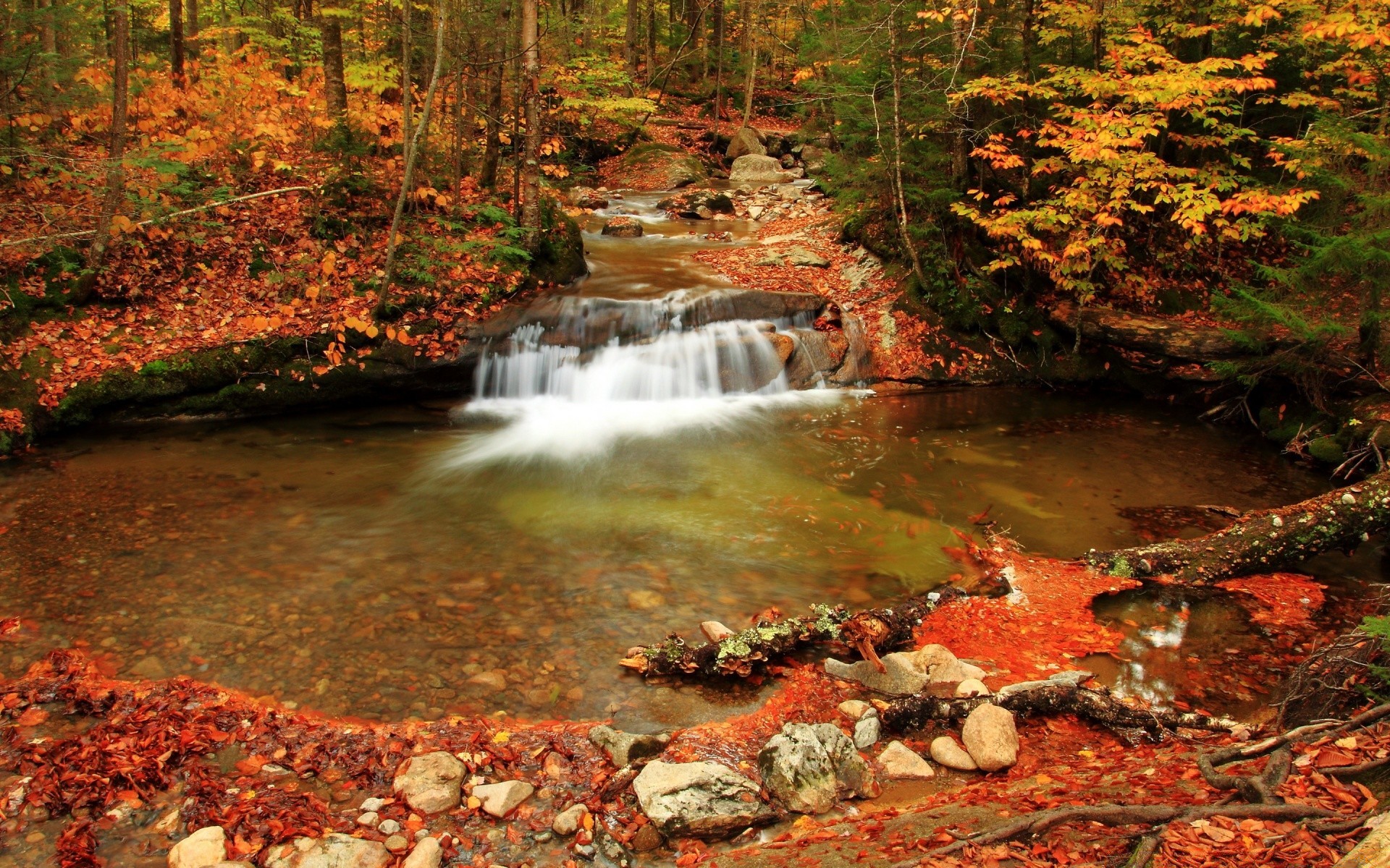 Bella foresta autunnale e ruscello