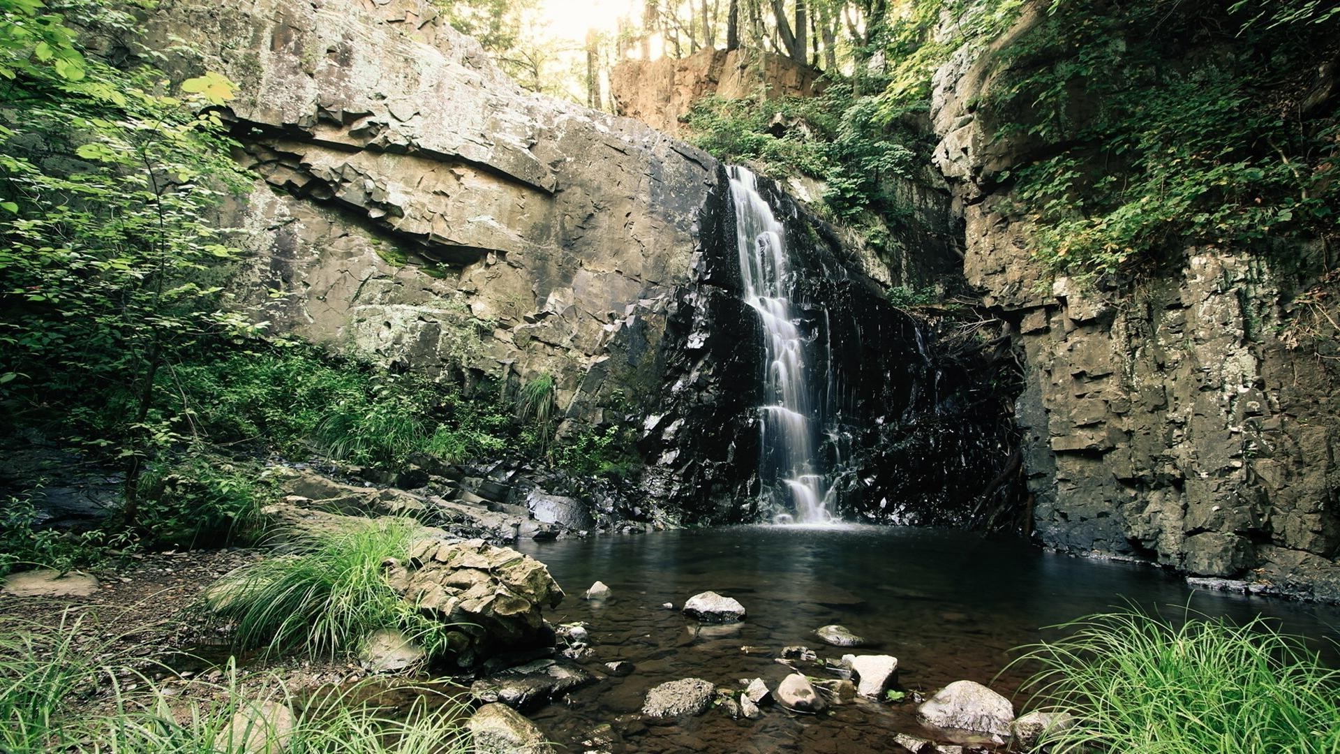 Grafica vista a Volo d'uccello della Cascata del fiume di montagna