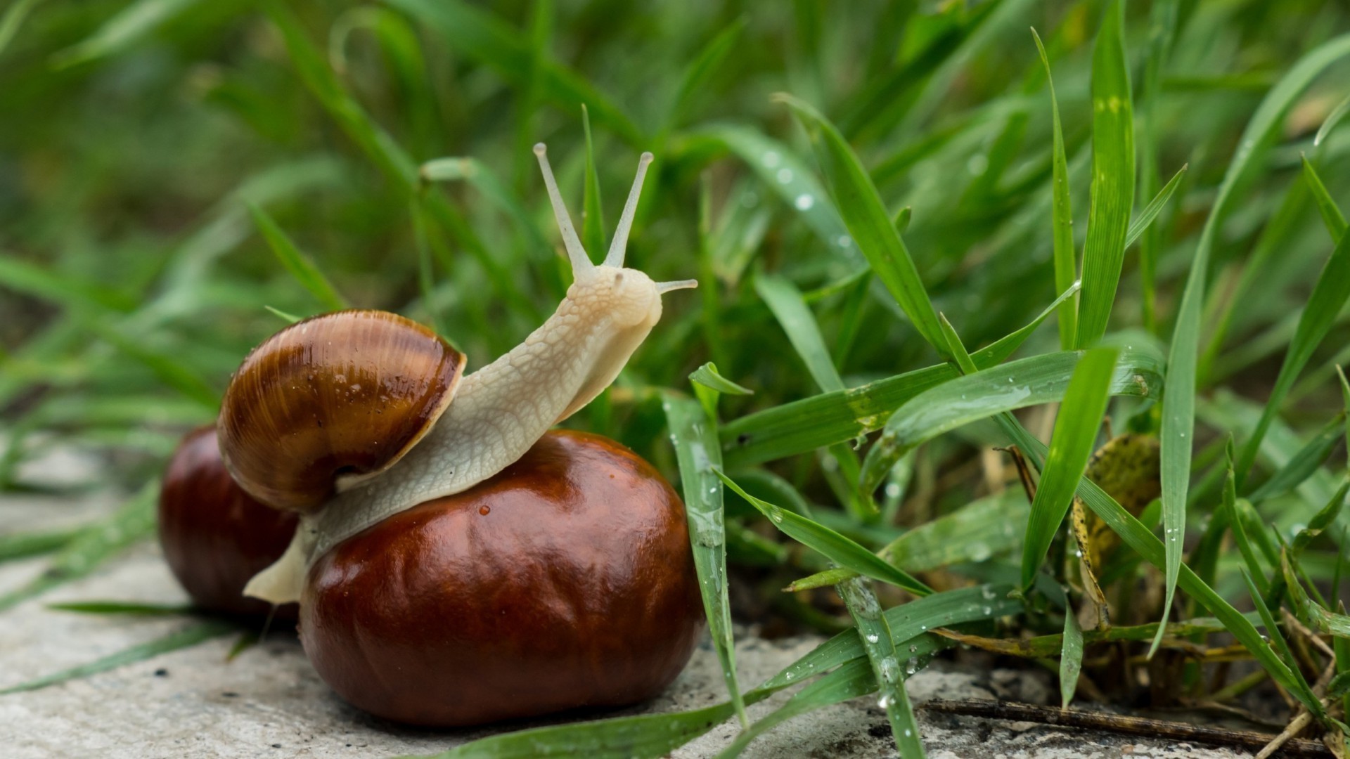Lumaca sul nucleo di castagno