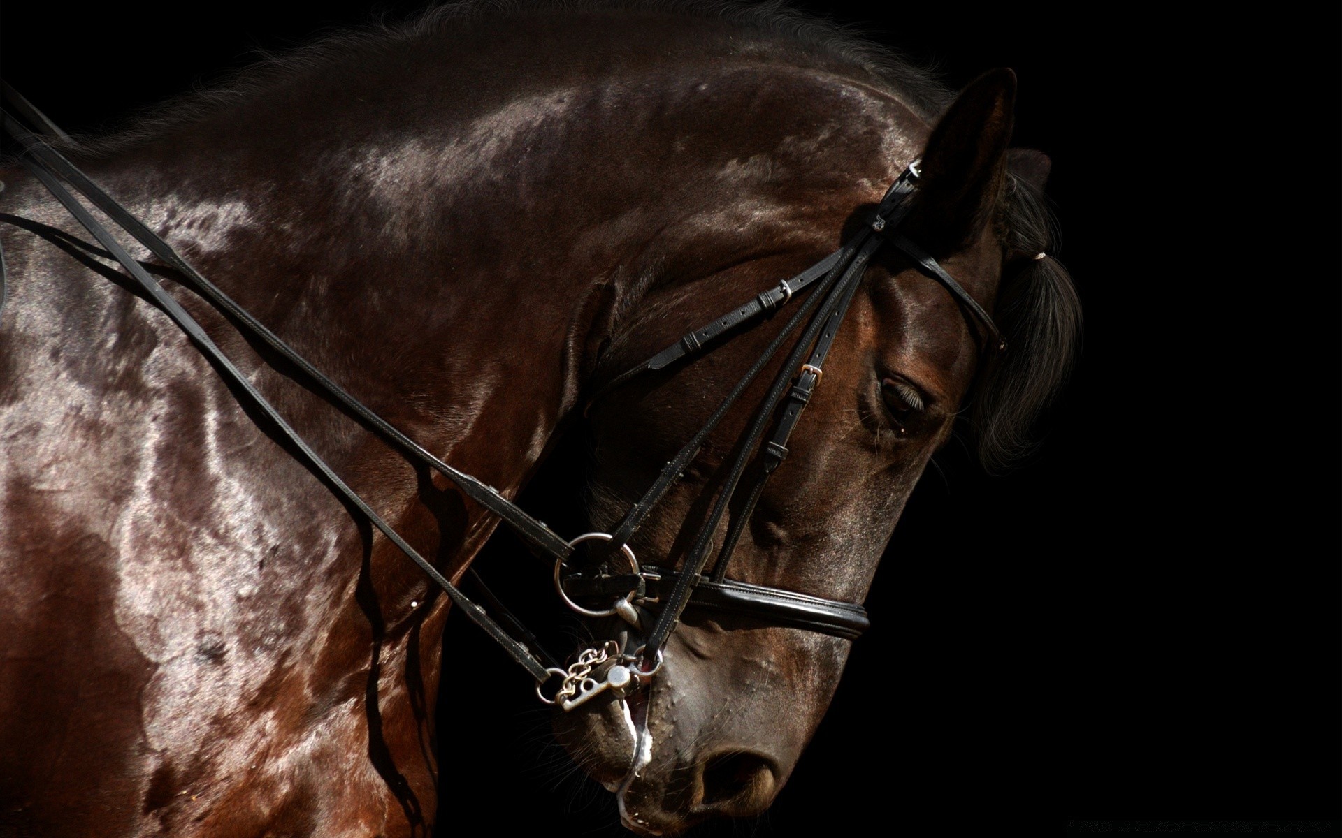 Cavallo grigio contro il cielo blu e la chioma degli alberi