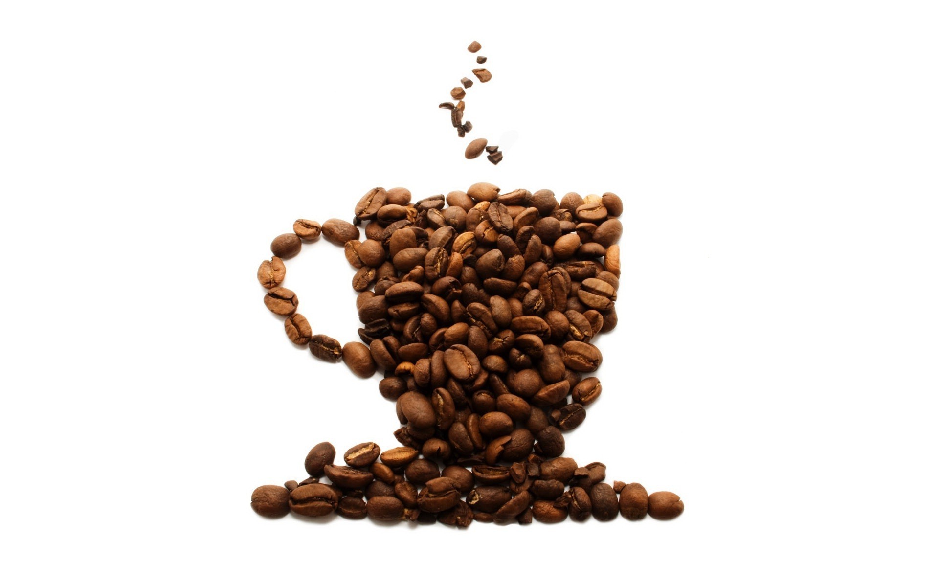 Illustrazione di una tazza di caffè con chicchi di caffè