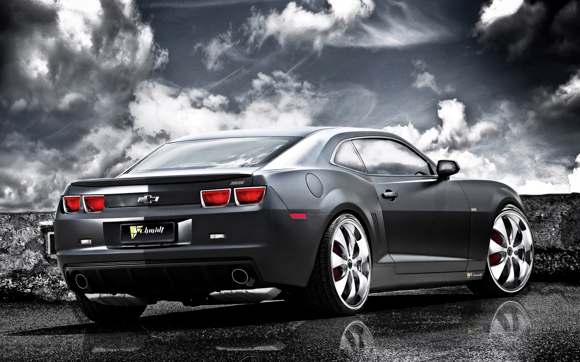 Chevrolet grigio e il suo riflesso sullo sfondo del cielo
