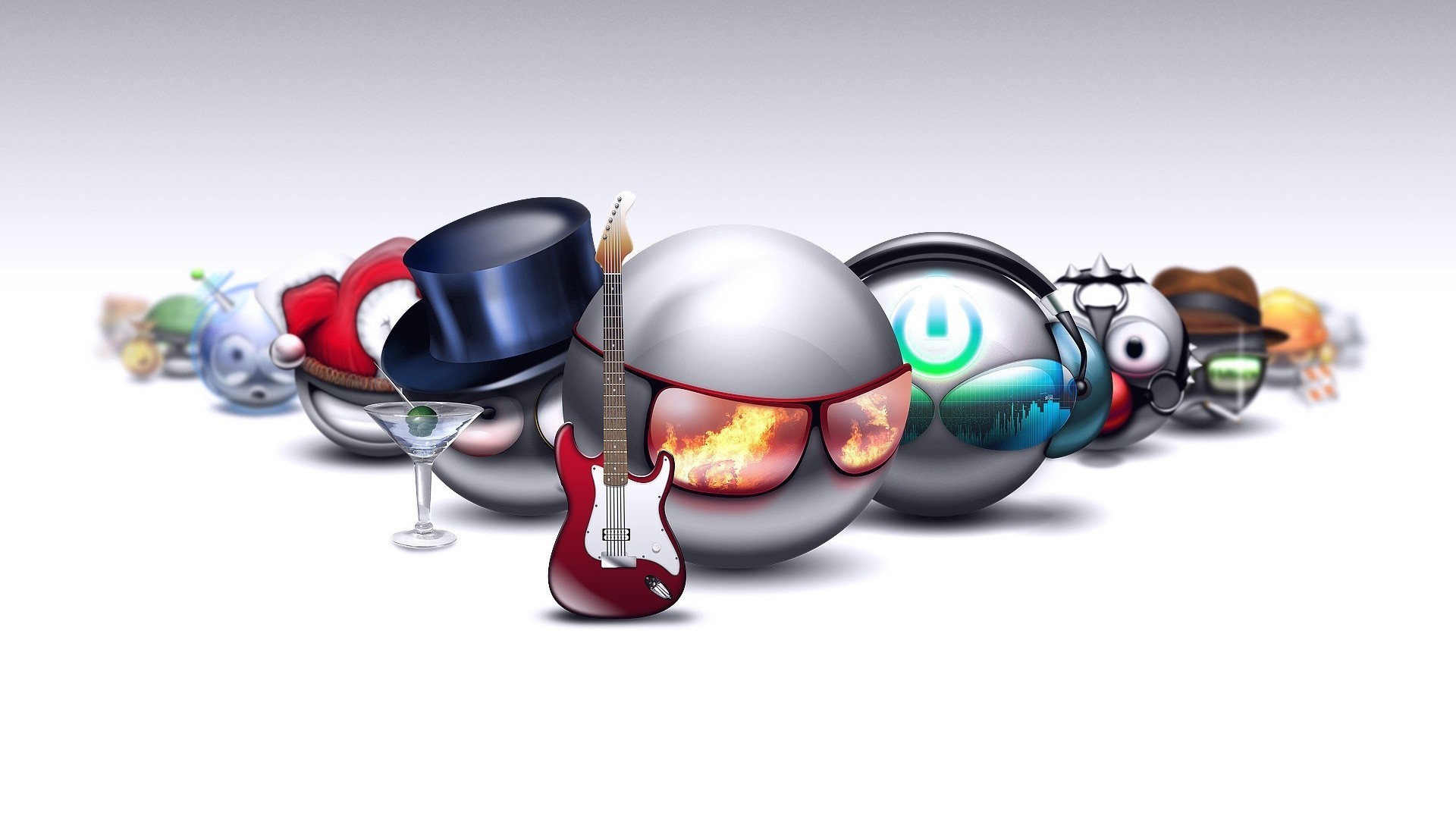 Chitarra nelle mani di un uomo sopra la testa su sfondo blu