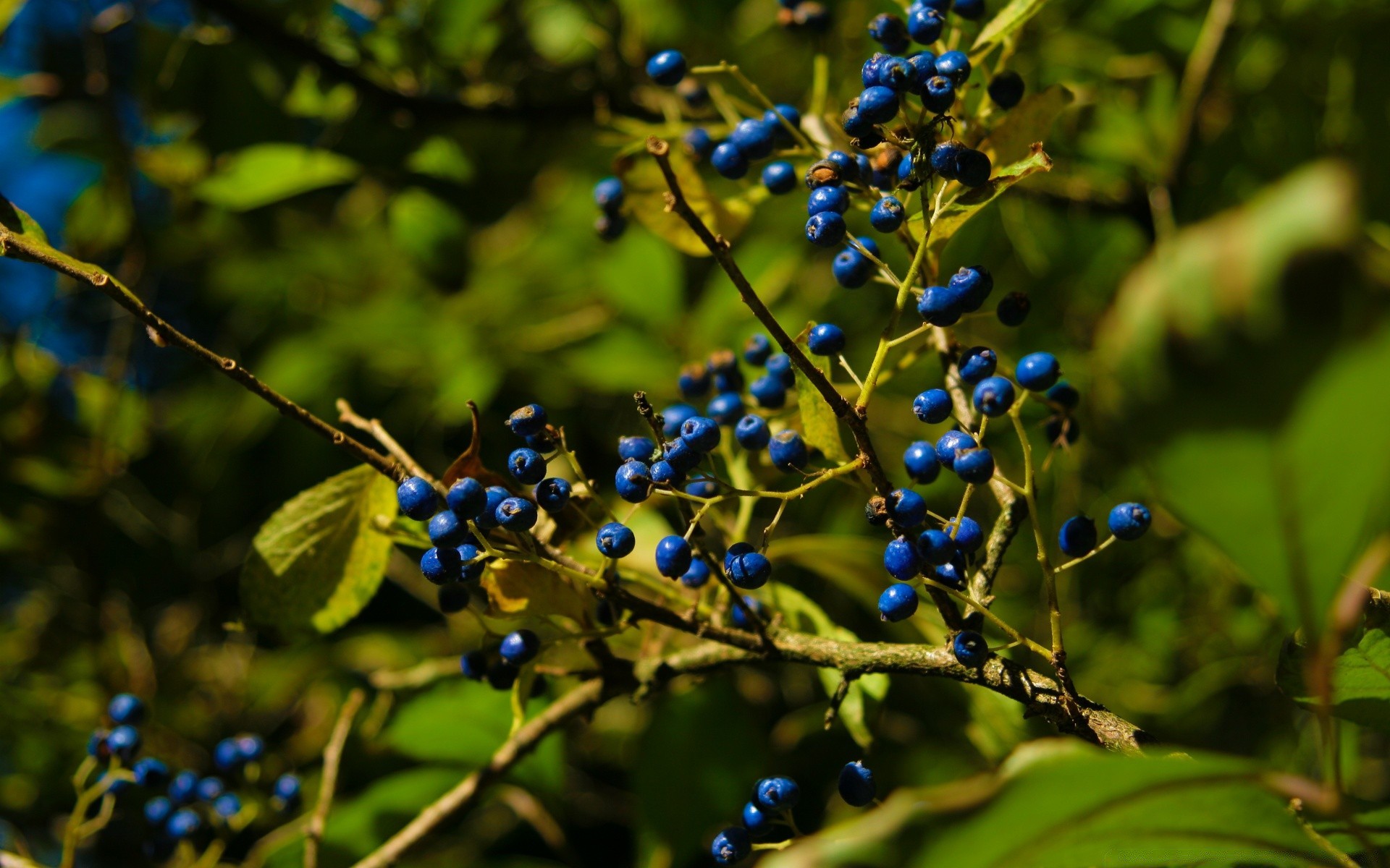 Bacche blu pendono su un ramo