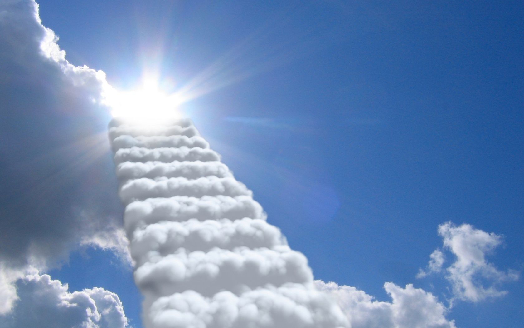 Serata in città. Il ponte va in lontananza. Grattacieli sullo sfondo di un cielo luminoso