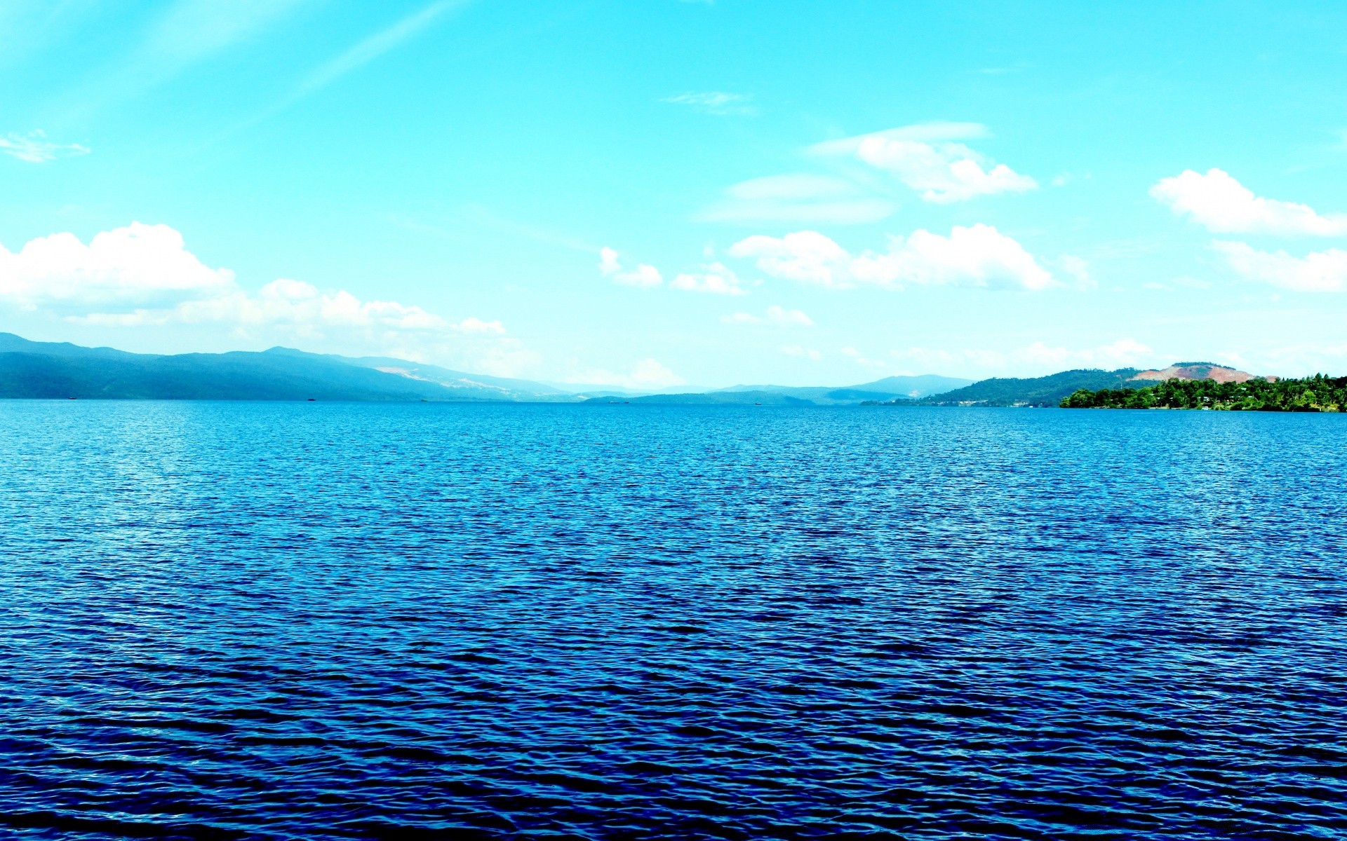 Superficie blu dell'acqua e cielo blu