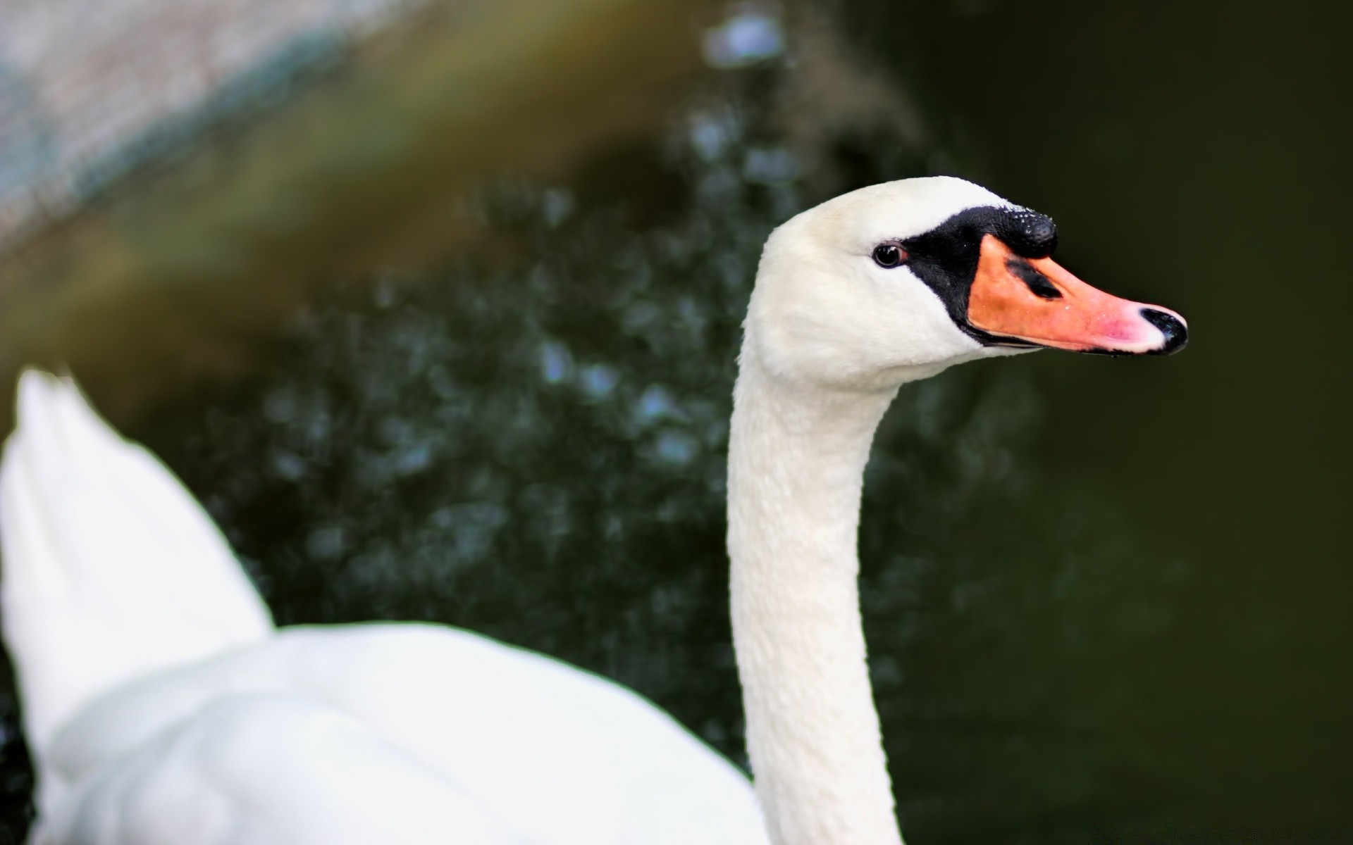 Due Cigni sull'acqua. Cigno con le ali aperte