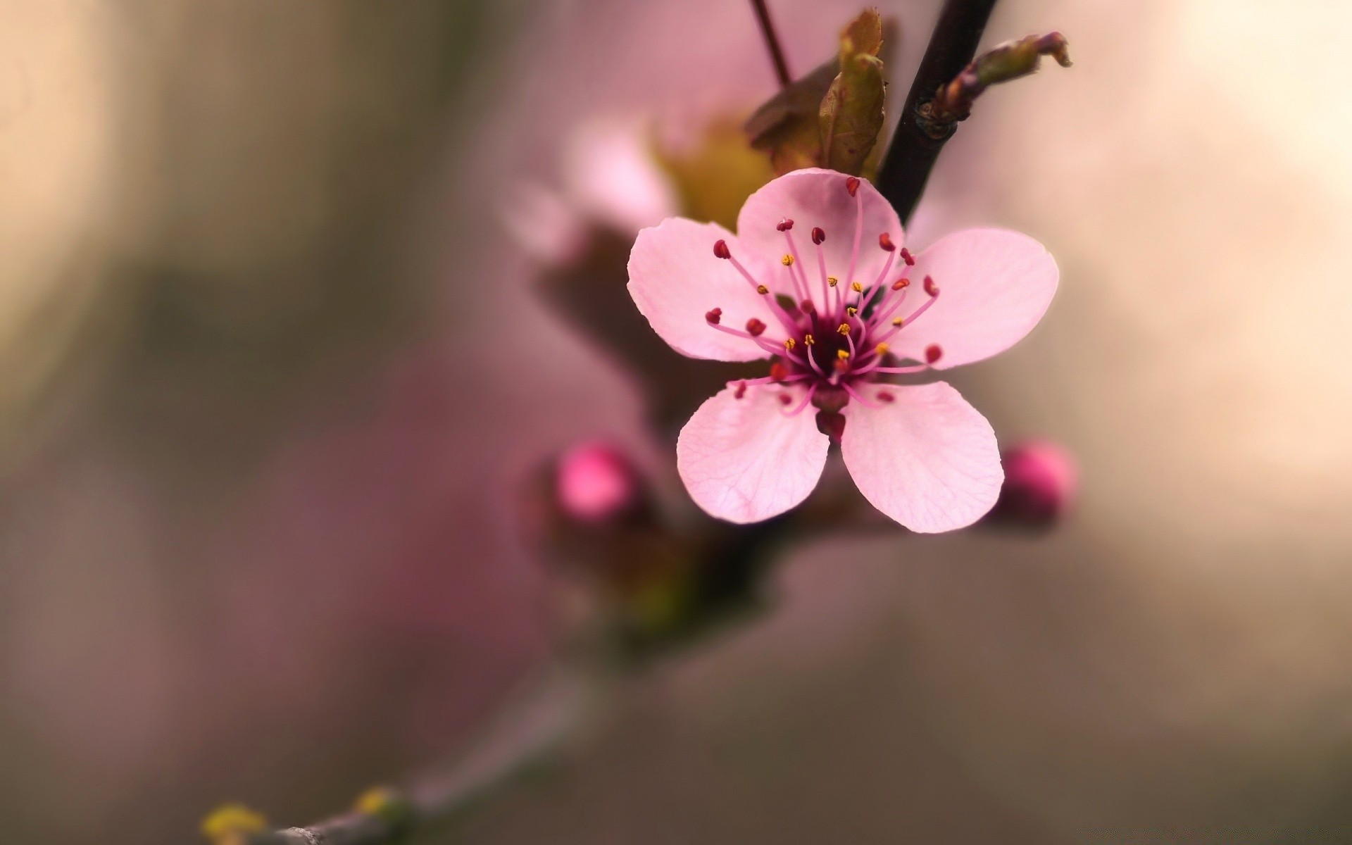 Macro-capacità. Fiore delicato rosa sul ramo