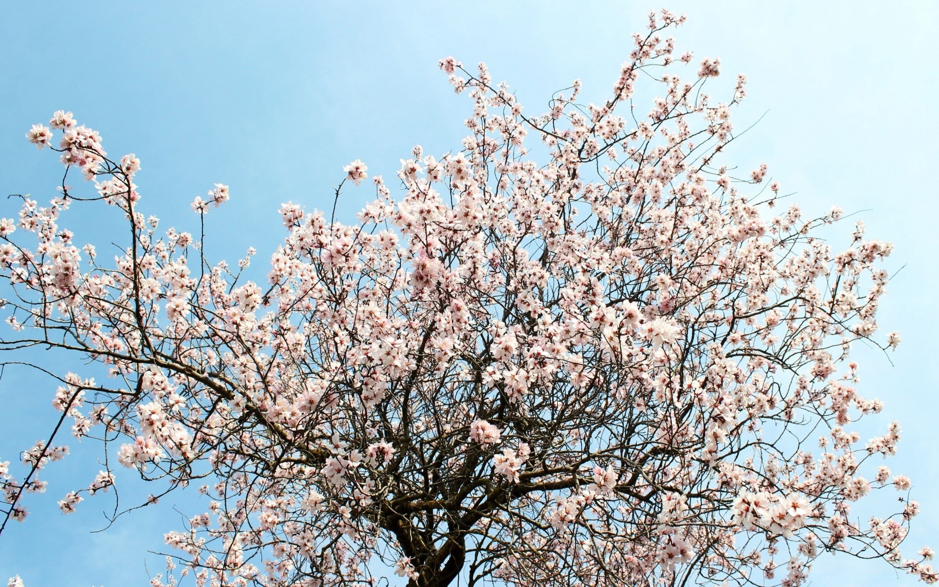 Albero di ciliegio in fiore. Albero di rose contro il cielo