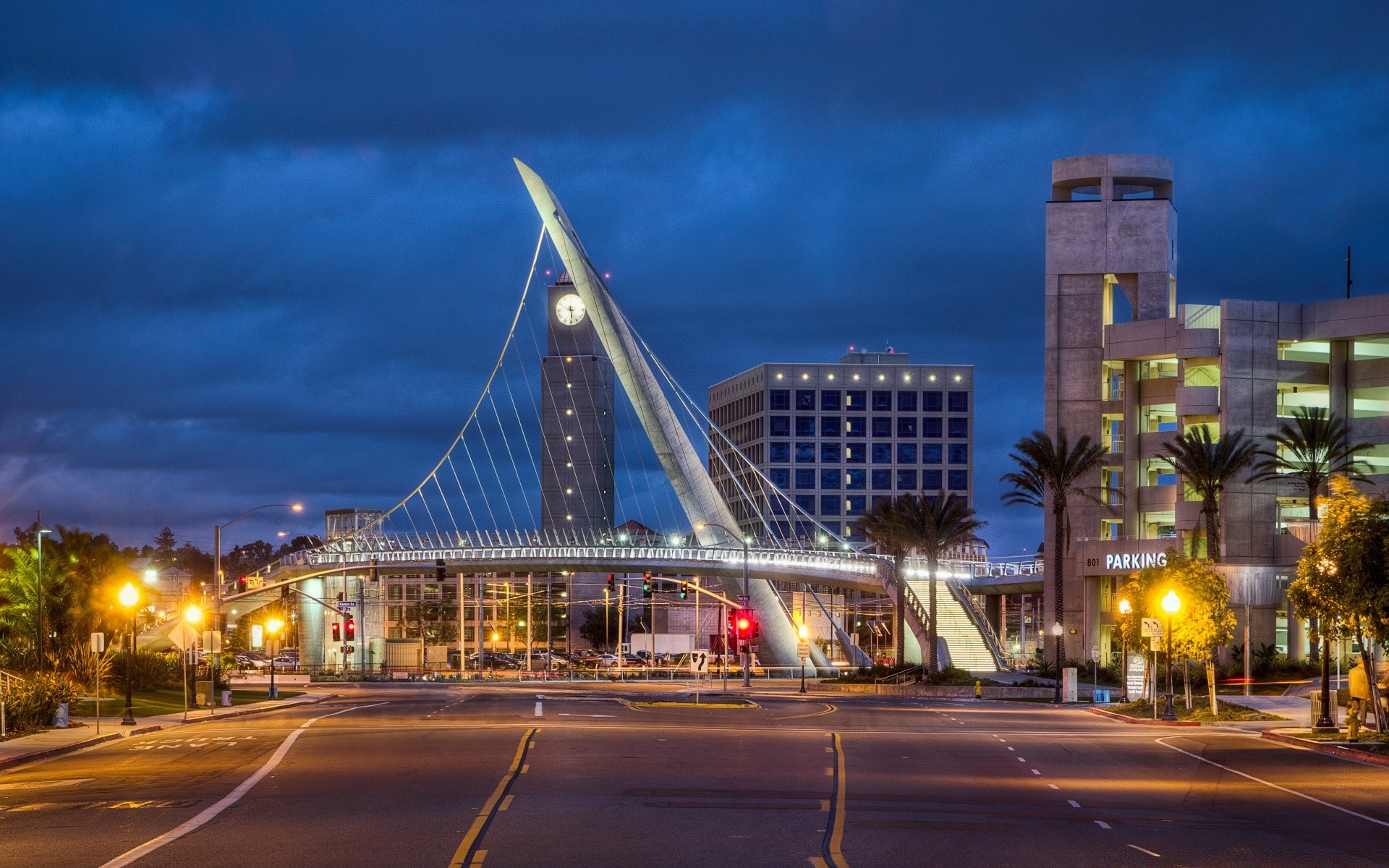 Al centro, il cielo notturno nella nebbia è delimitato da grattacieli nelle luci