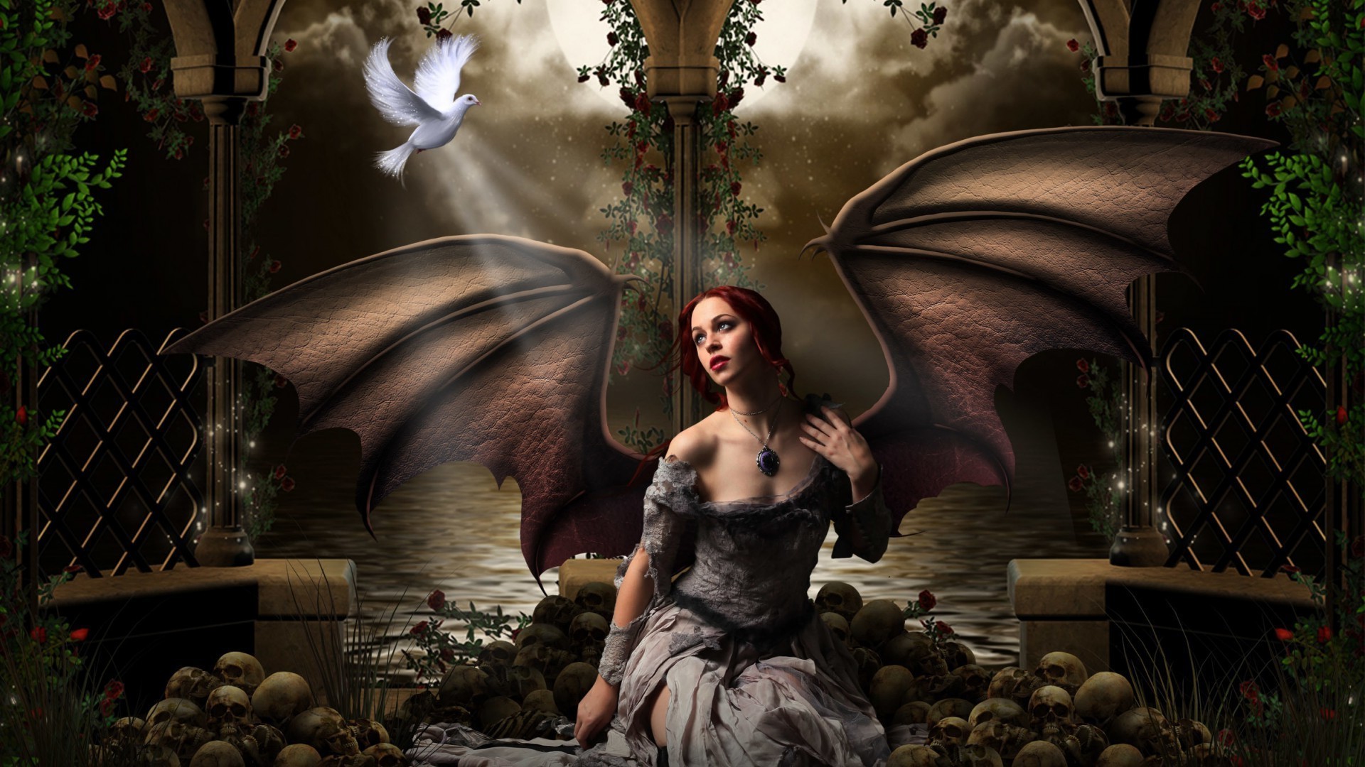 Strega carina e colomba bianca
