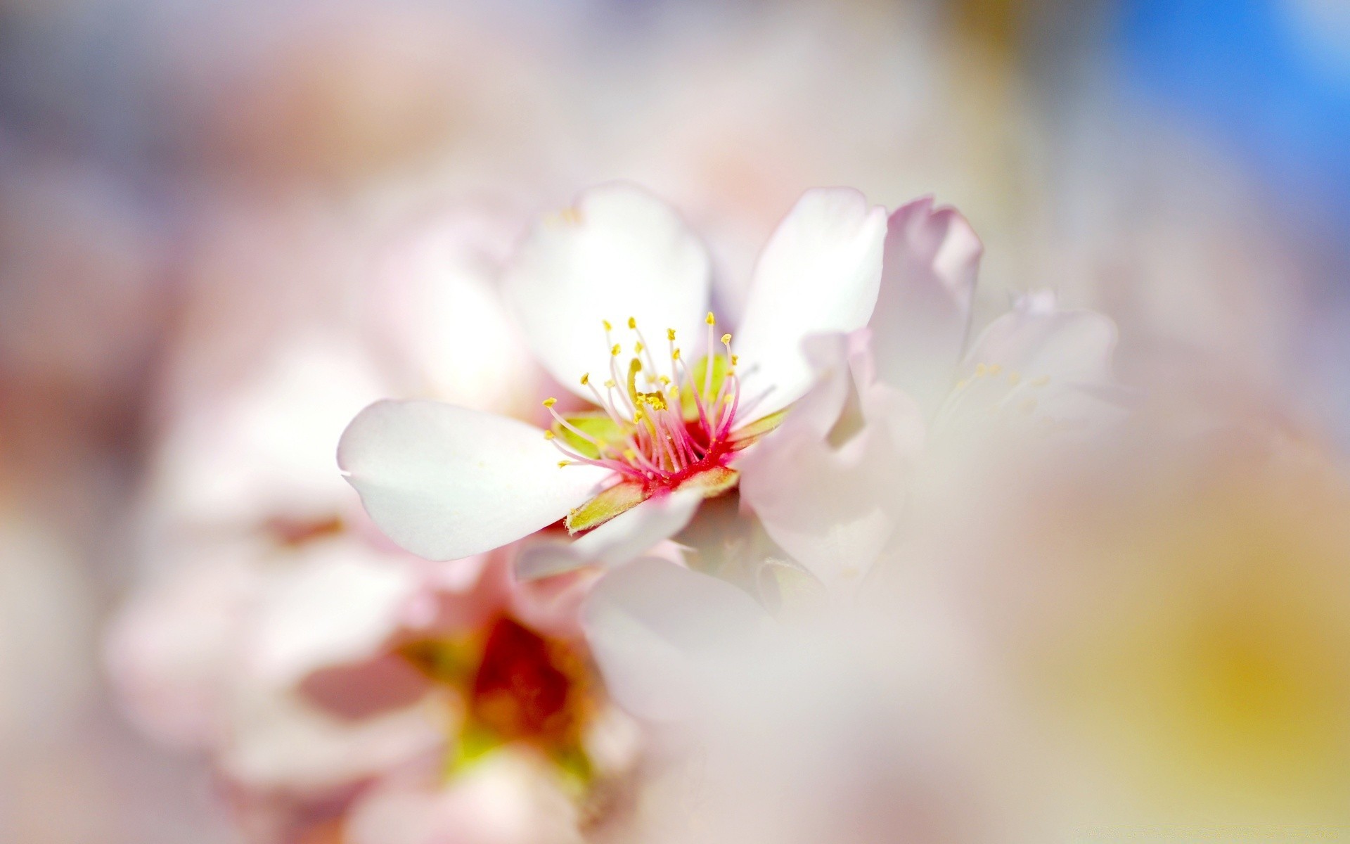 Fiori primaverili dell'albero di ciliegio su sfondo sfocato