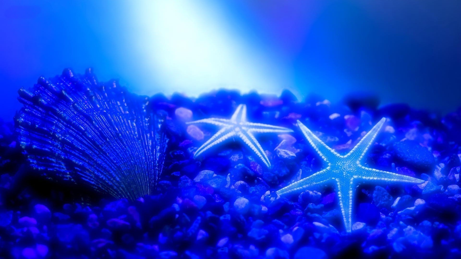 Due stelle marine e una conchiglia sul fondo dell'oceano