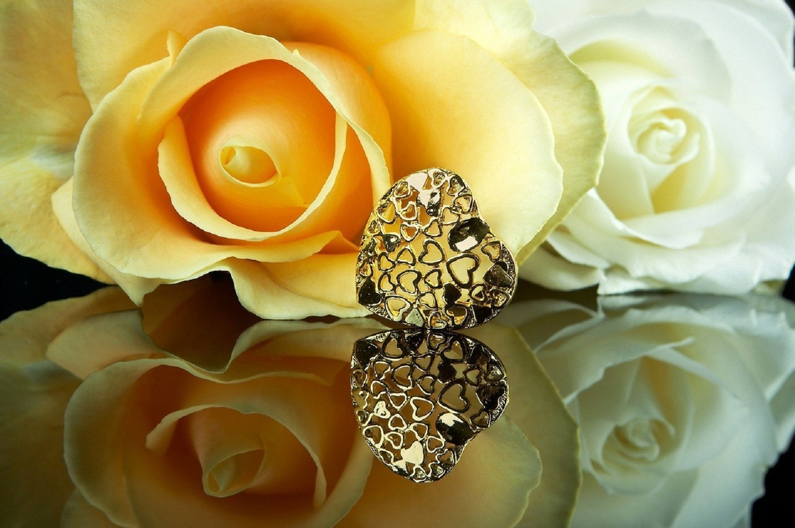 Confezione regalo in oro con grande fiocco in piedi sul tavolo con candele accese