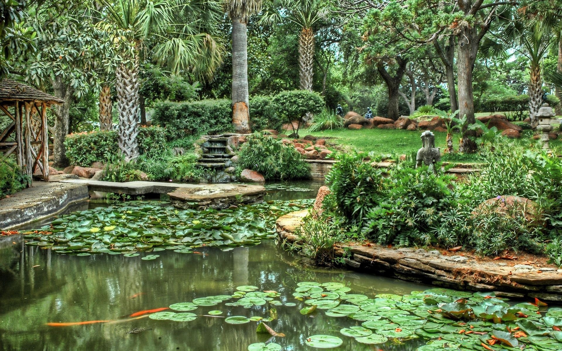 Capanna vicino a uno stagno invaso nella foresta pluviale