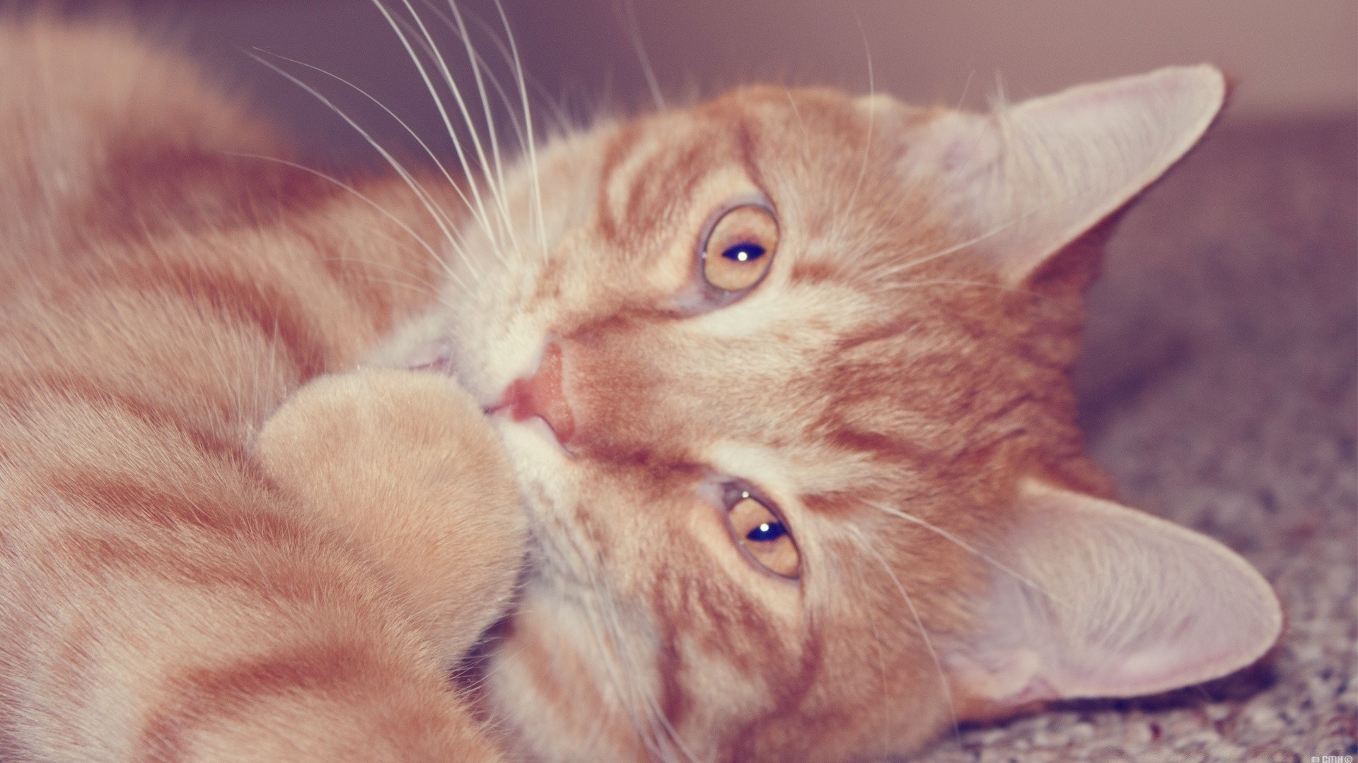 Carino gatto lecca zampa