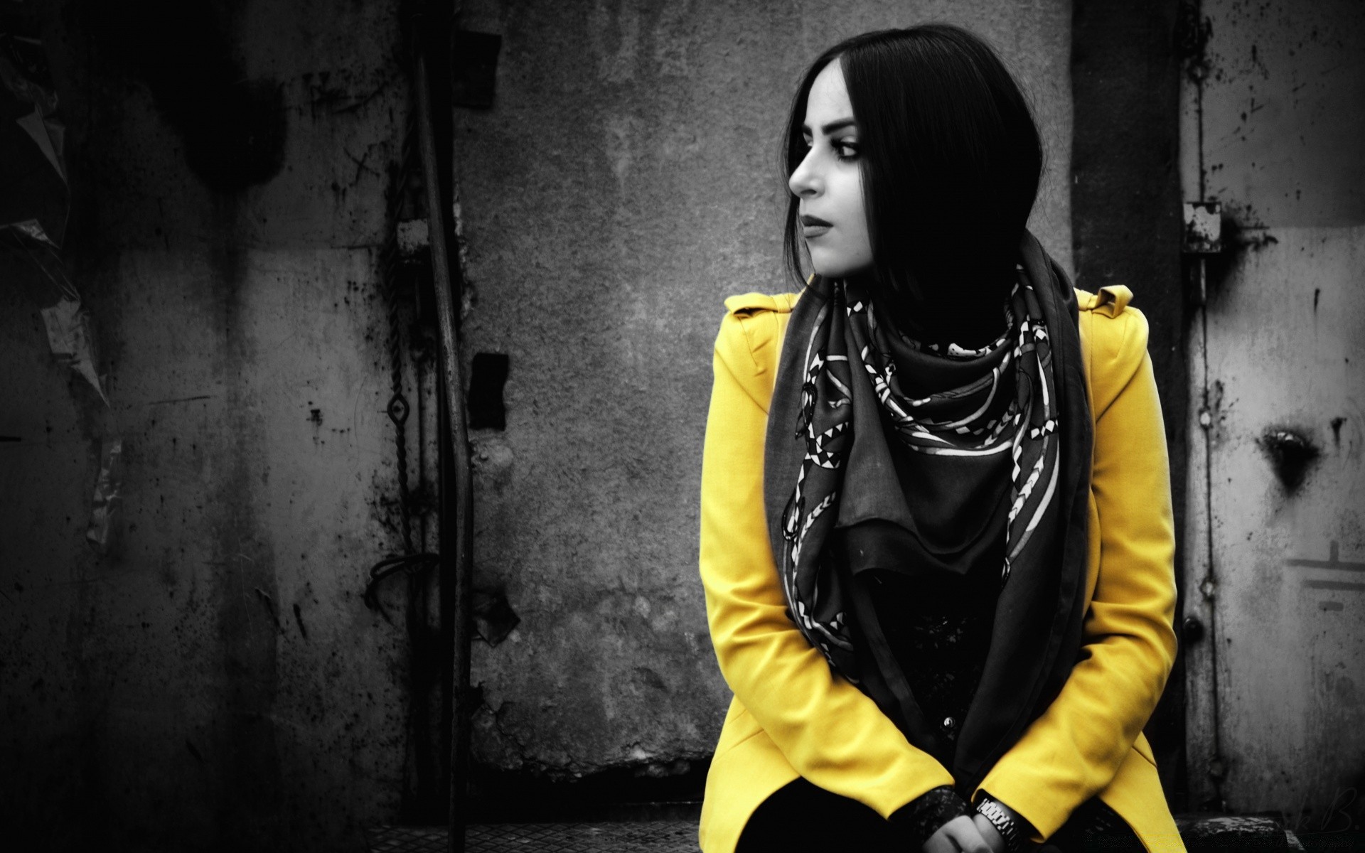 Ritratto di una ragazza in una giacca gialla brillanteRitratto di una ragazza in una giacca gialla brillante
