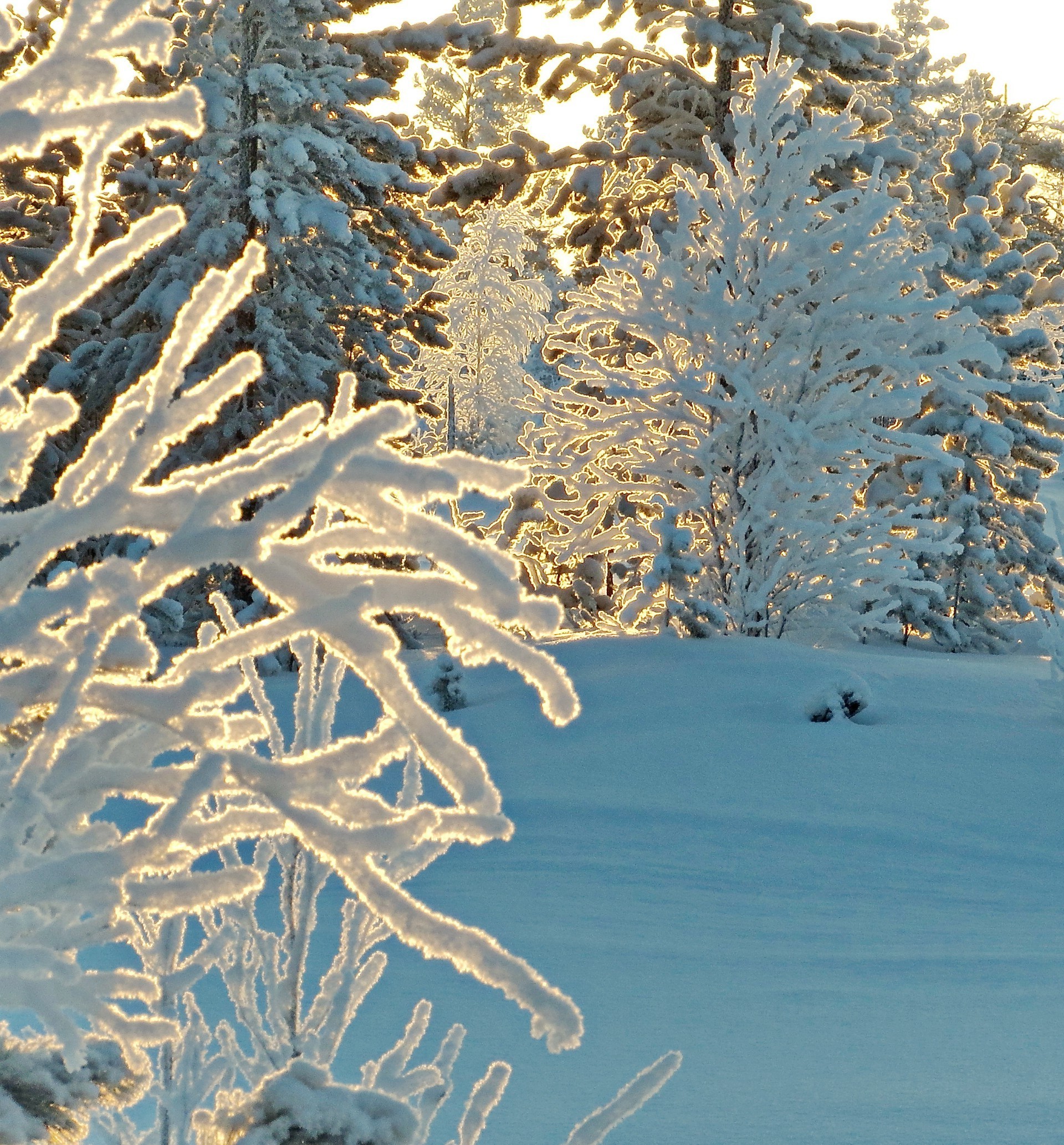 Immagine di un inverno freddo e gelido sugli alberi di Natale