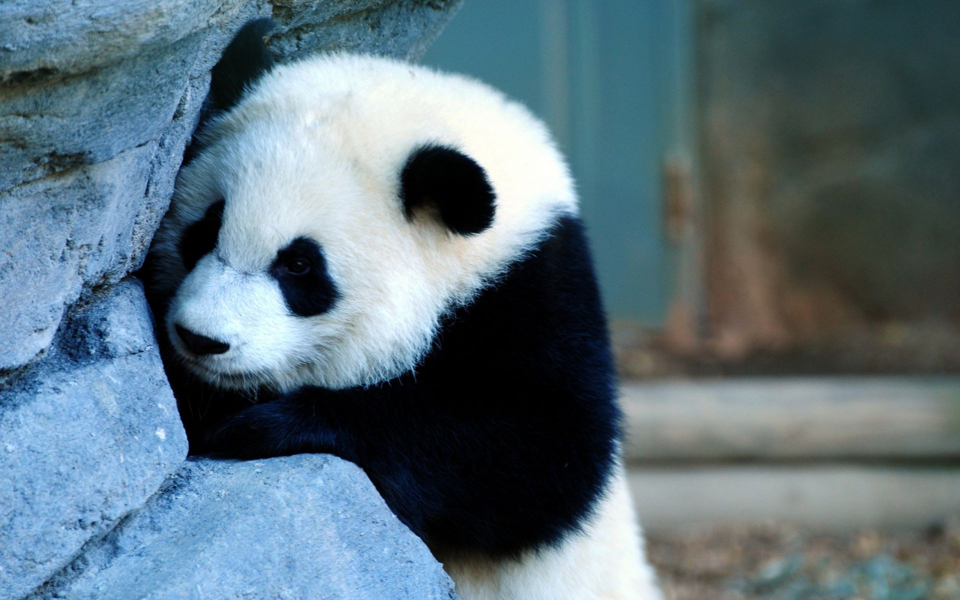 Cute Panda cerca di trovare nel muro qualcosa di suo interesse