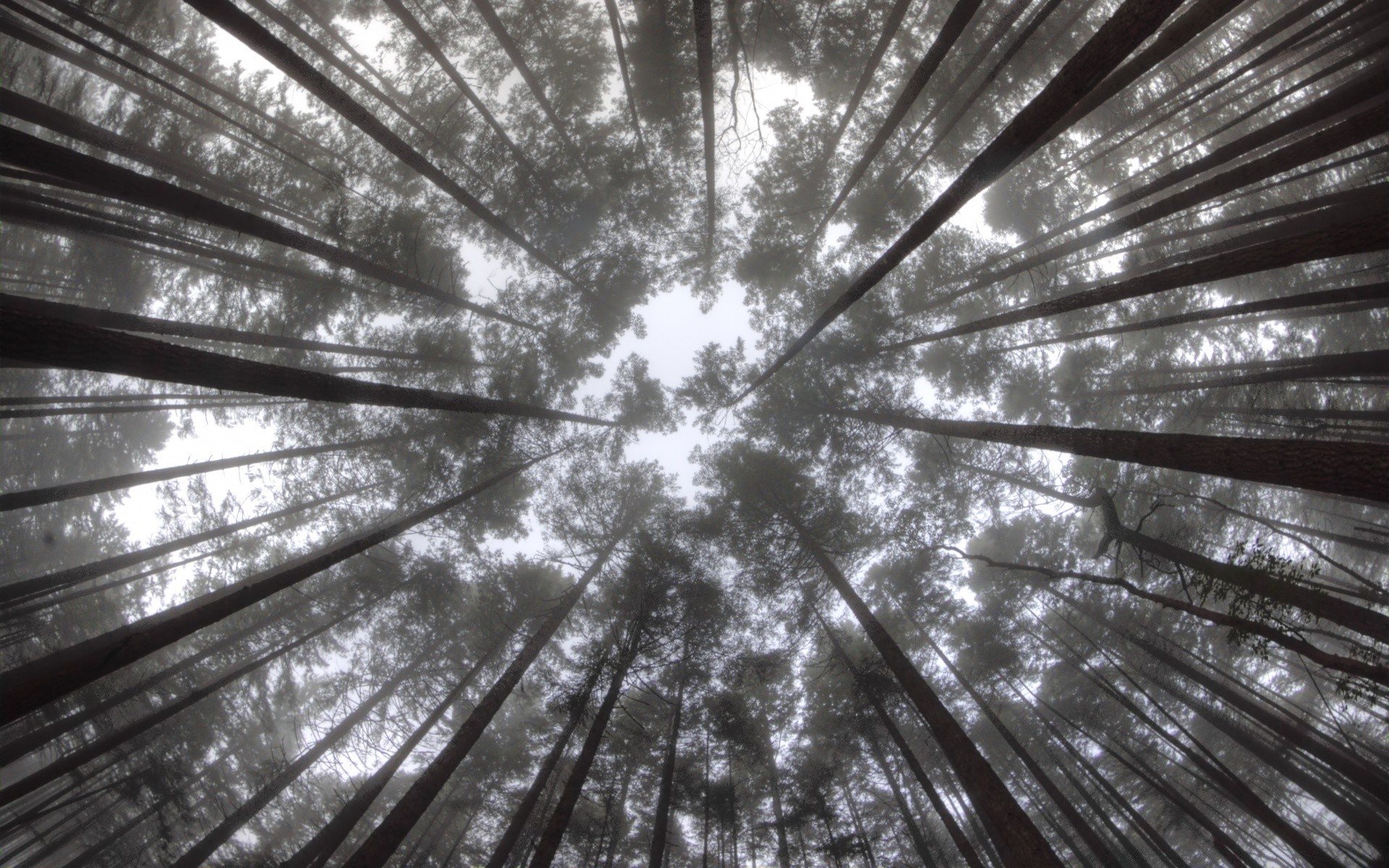 Paesaggio luce brillante attraverso le foglie degli alberi