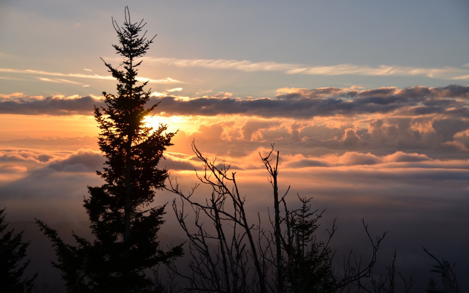 I raggi del sole si fanno strada attraverso la fitta chioma dell'albero