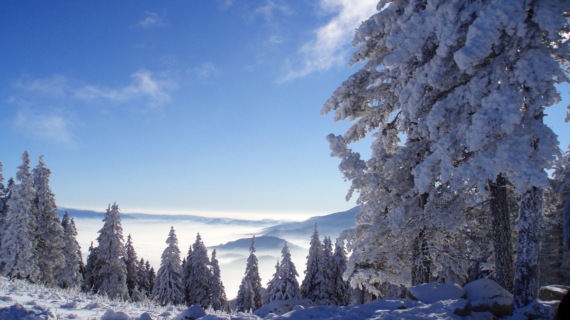 Riflesso delle montagne innevate nella superficie dell'acqua