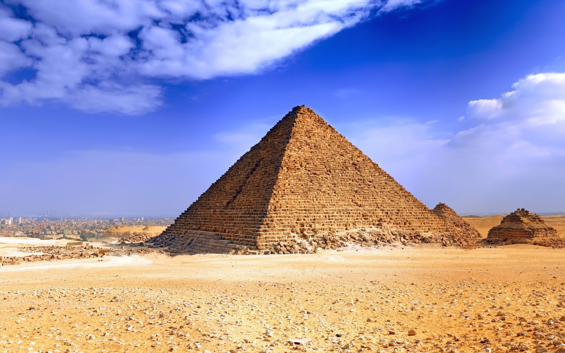 Piramide in una giornata di sole su uno sfondo di cielo blu