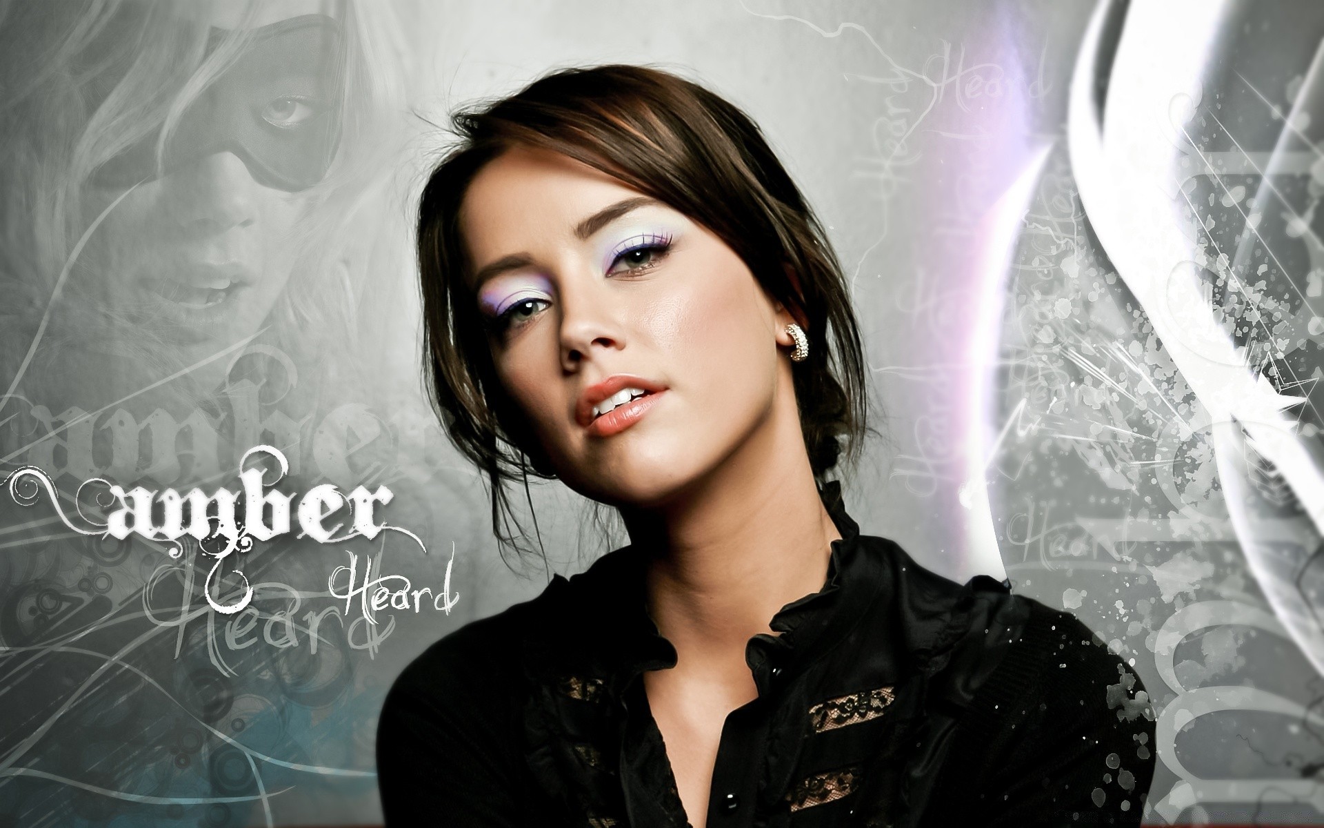 Ritratto di Amber Heard in camicetta nera su sfondo astratto
