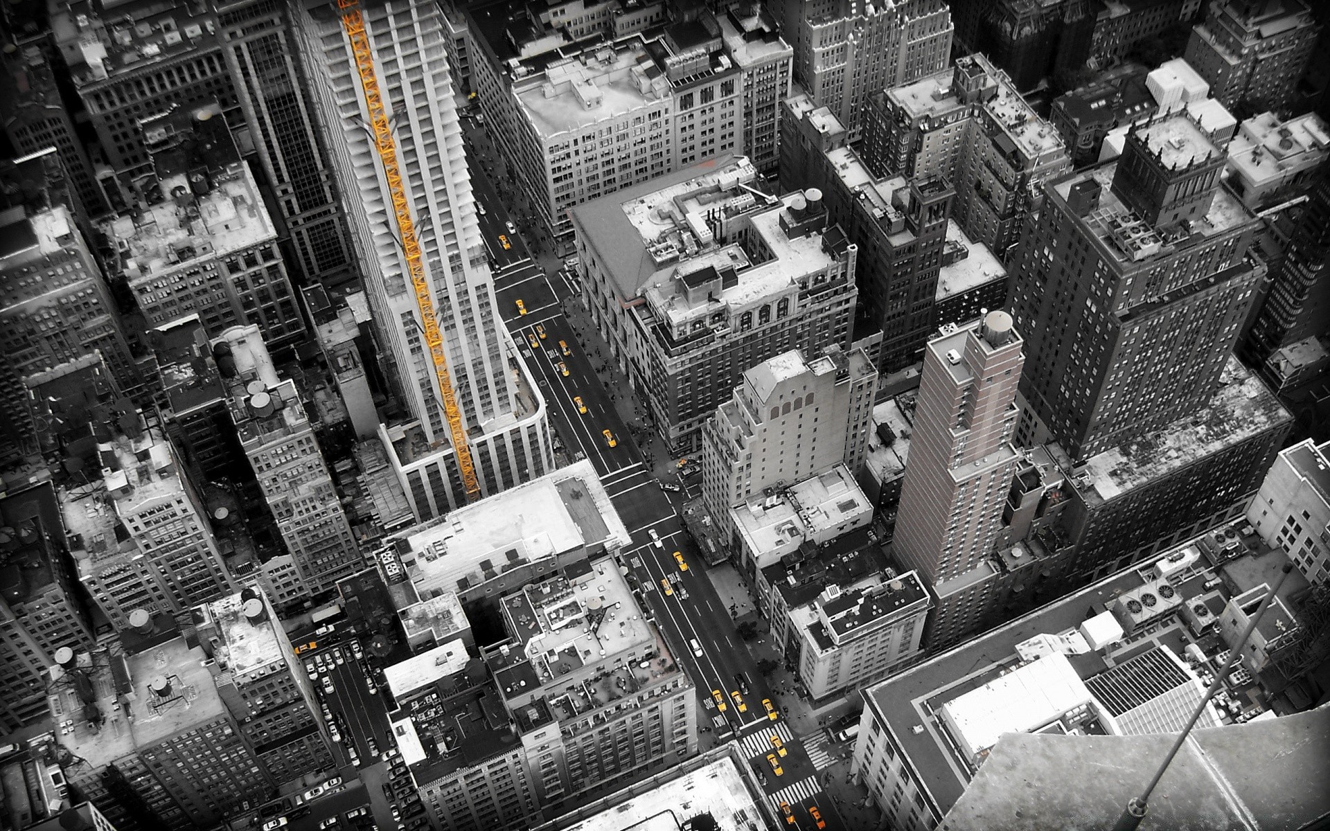Immagine in bianco e nero dei grattacieli dall'alto