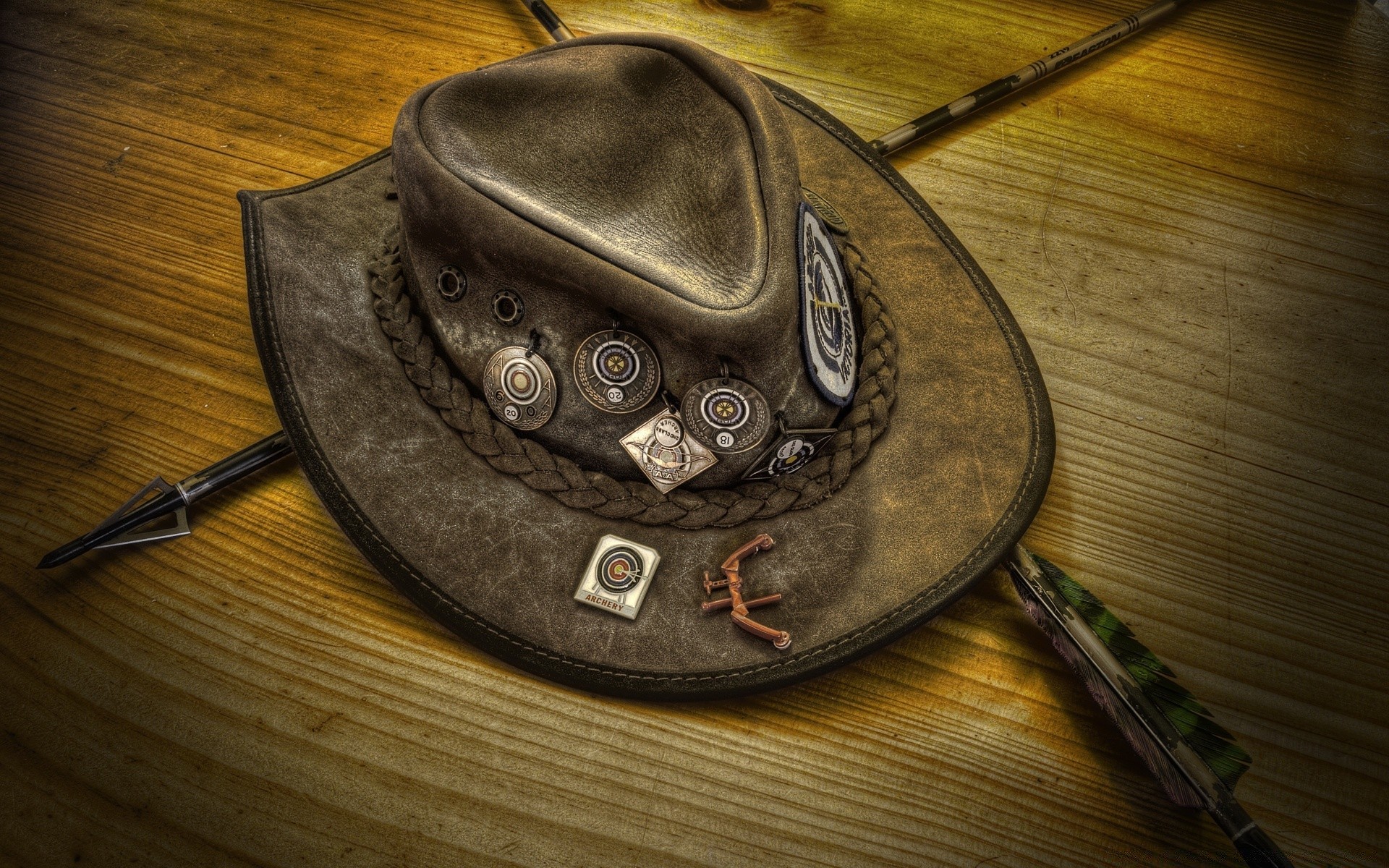Cappello vintage con frecce sul tavolo di legno