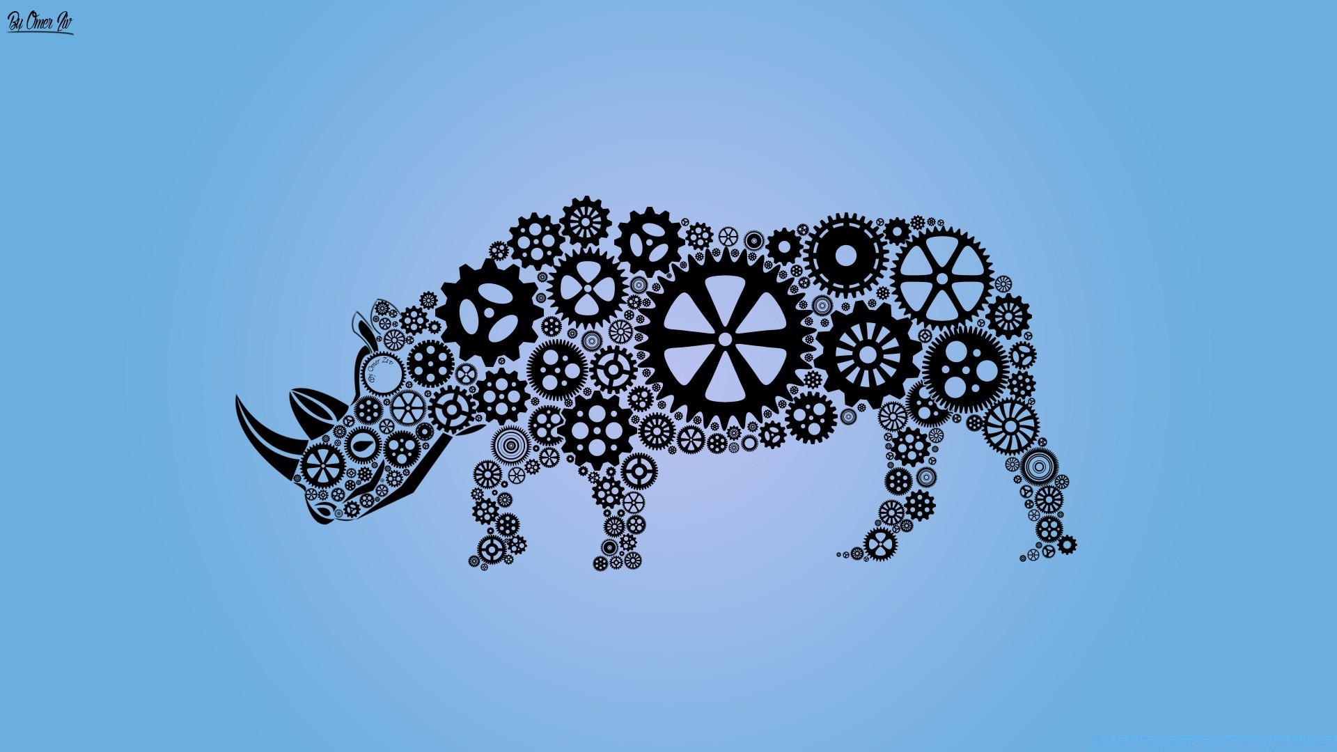 Disegno grafico di un rinoceronte dagli ingranaggi