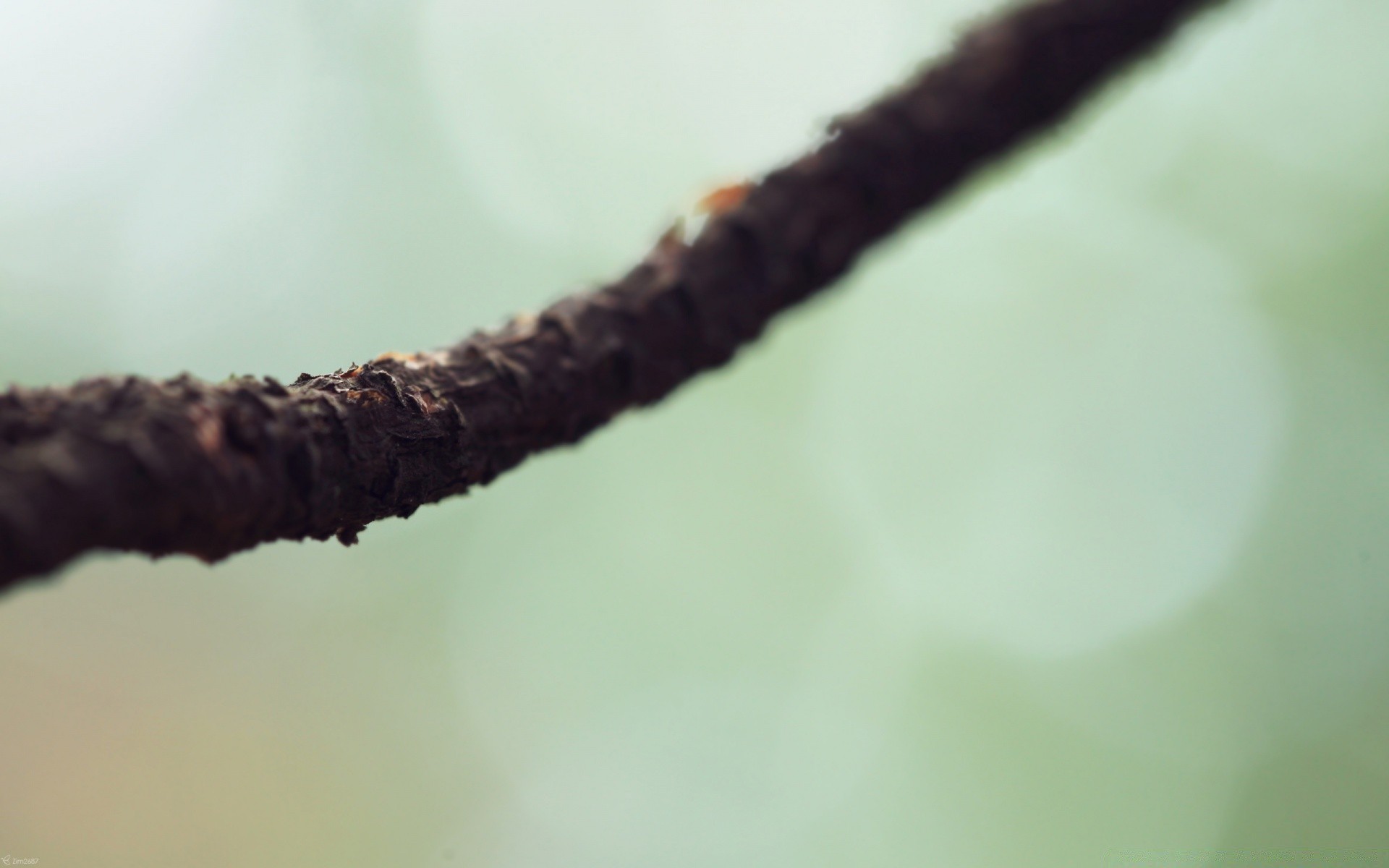 Un ramo di albero scuro con messa a fuoco parziale sulla sua corteccia con uno sfondo chiaro sfocato
