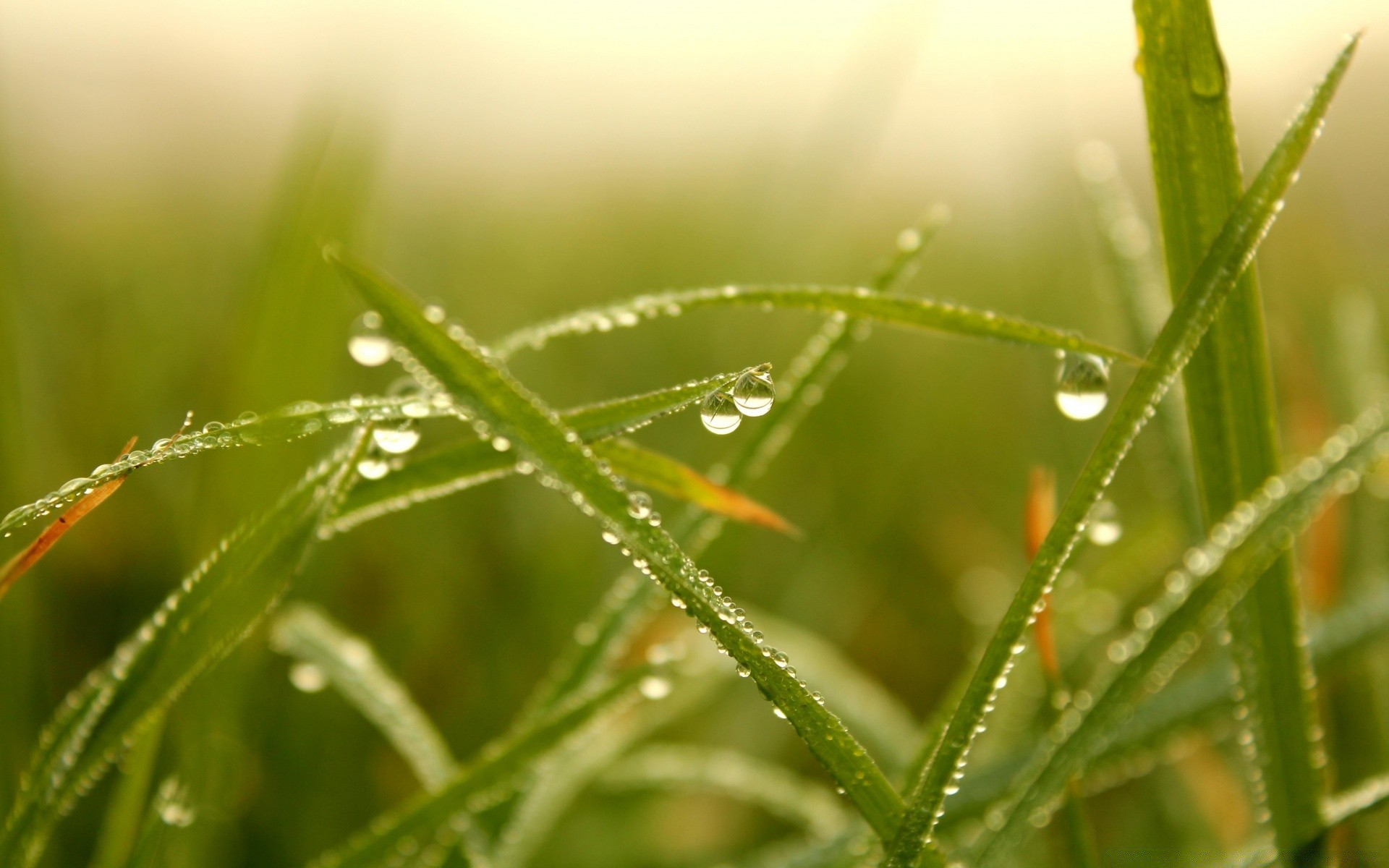 Steli d'erba in gocce di rugiada