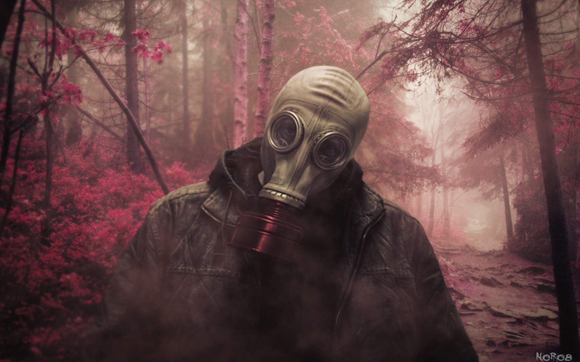 Figura in maschera antigas nell'area riservata