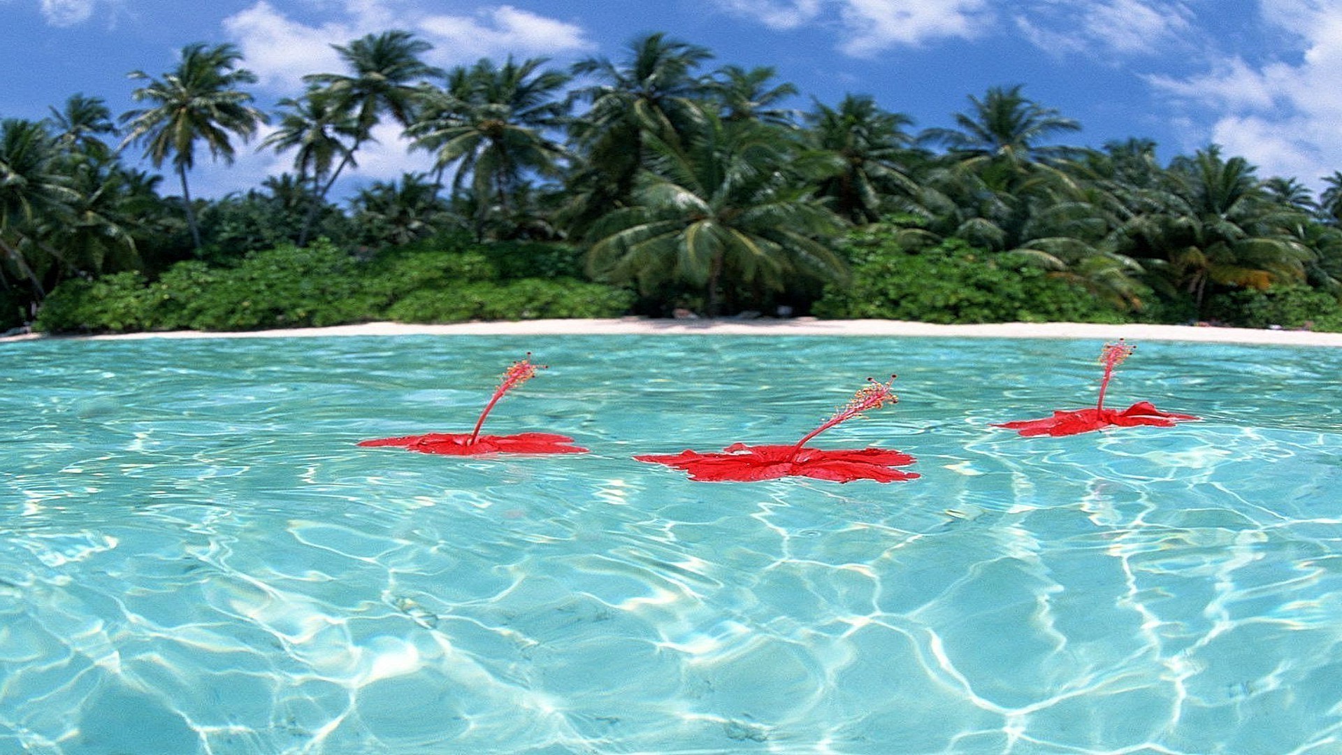 Cielo soleggiato sopra le spiagge bianche e l'acqua turchese