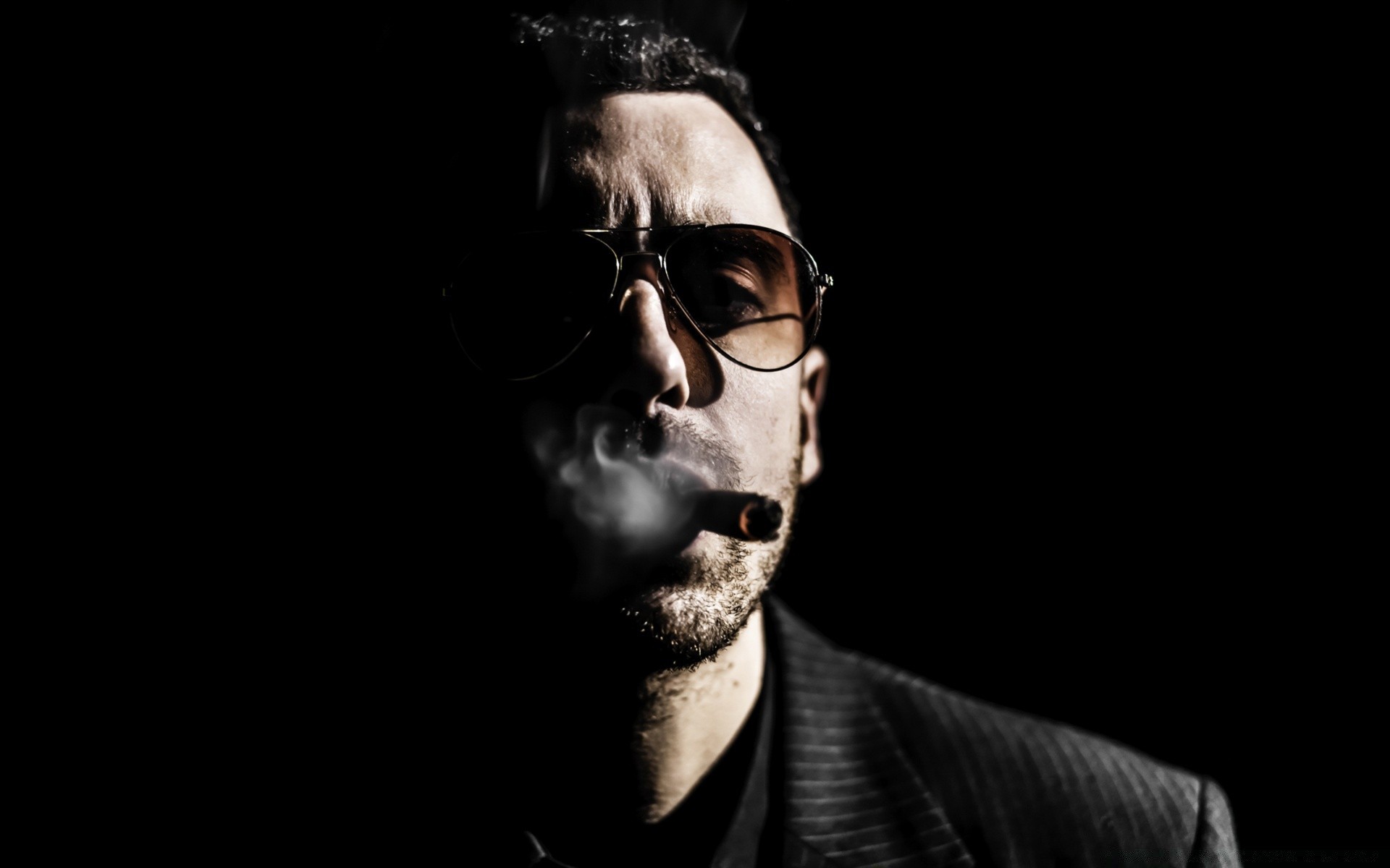 Ritratto bianco di un uomo adulto con un sigaro in bocca