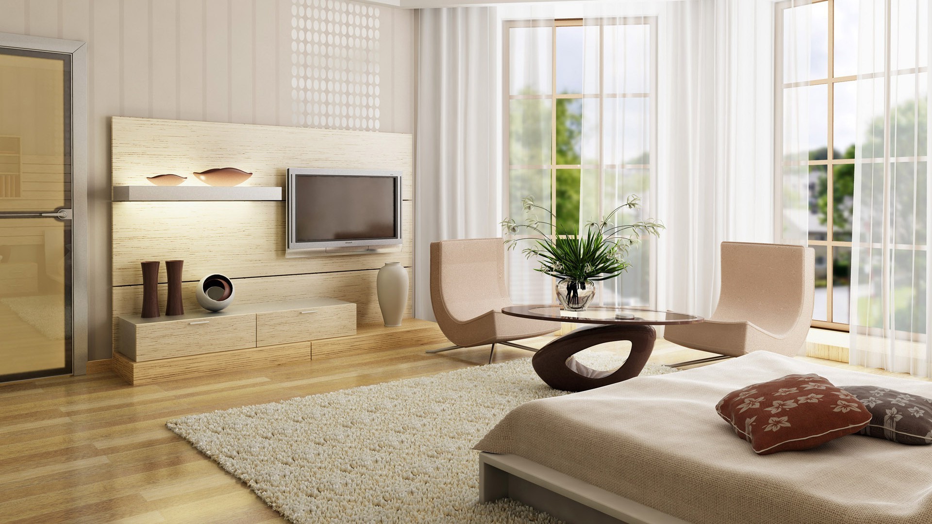 Camera da letto. Camera d'albergo. Camera da letto moderna