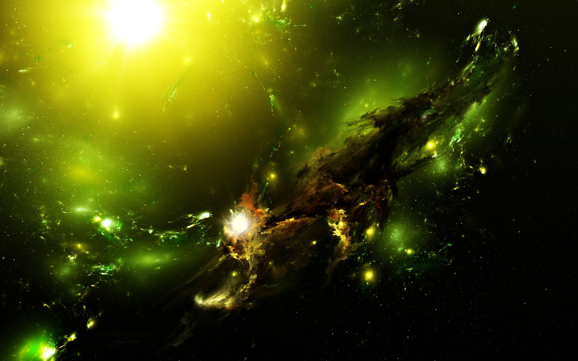 Parata spaziale dei pianeti nei toni del giallo e del verde