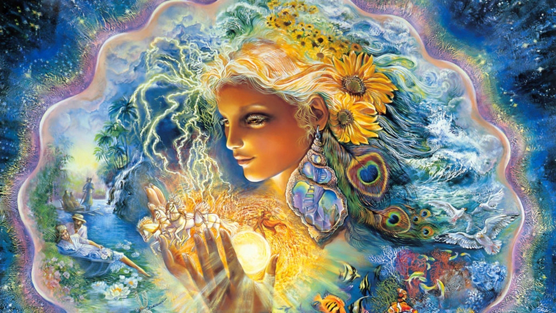 Fantastica Fata dai capelli lunghi in bilico nel cielo