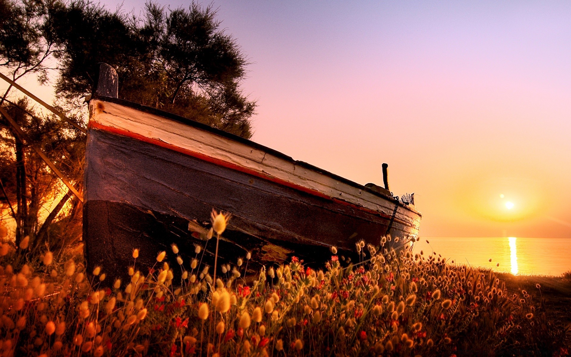 Tramonto tranquillo vicino all'acqua nel deserto europeo