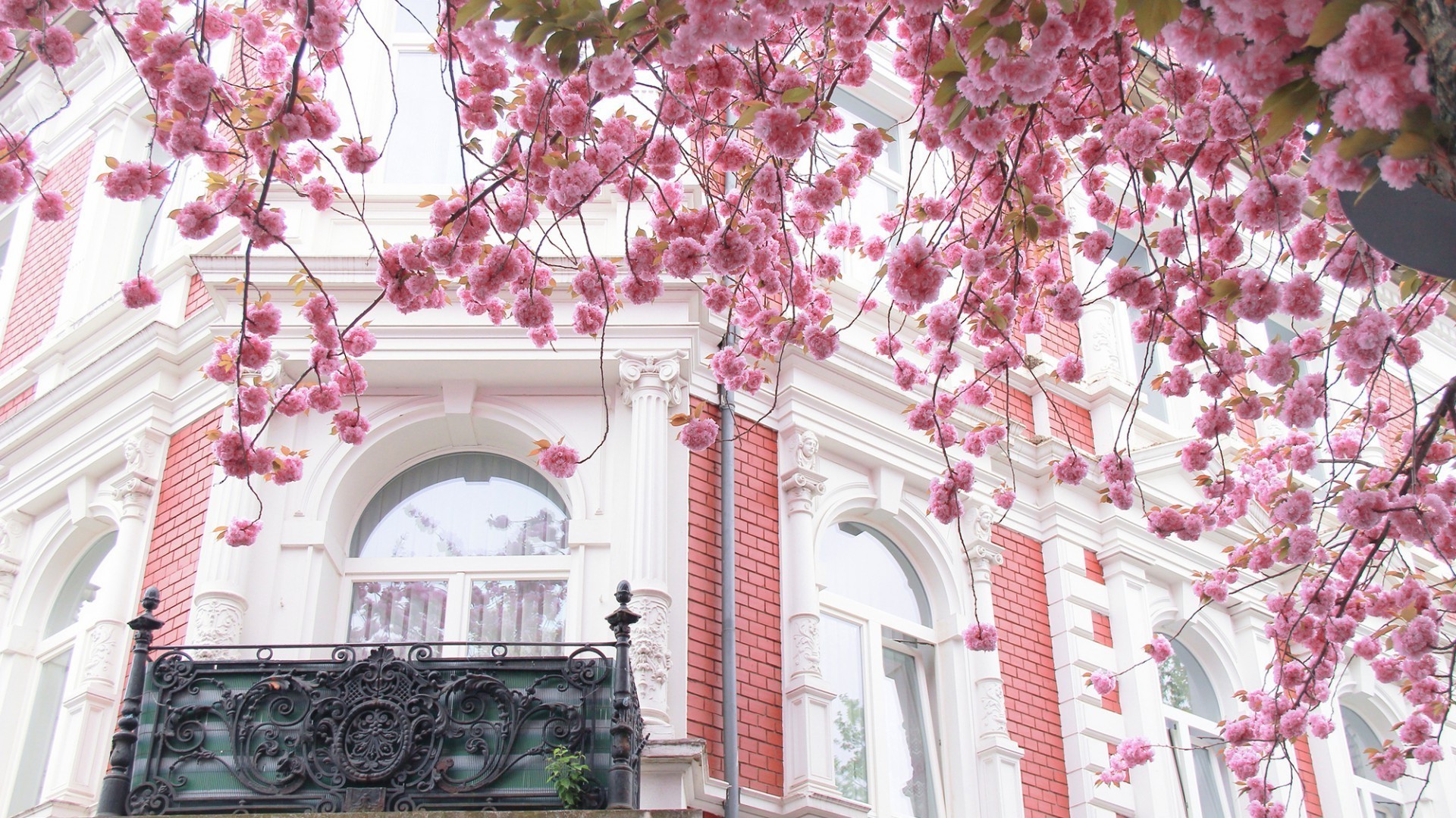 Architettura urbana decorata con fiori